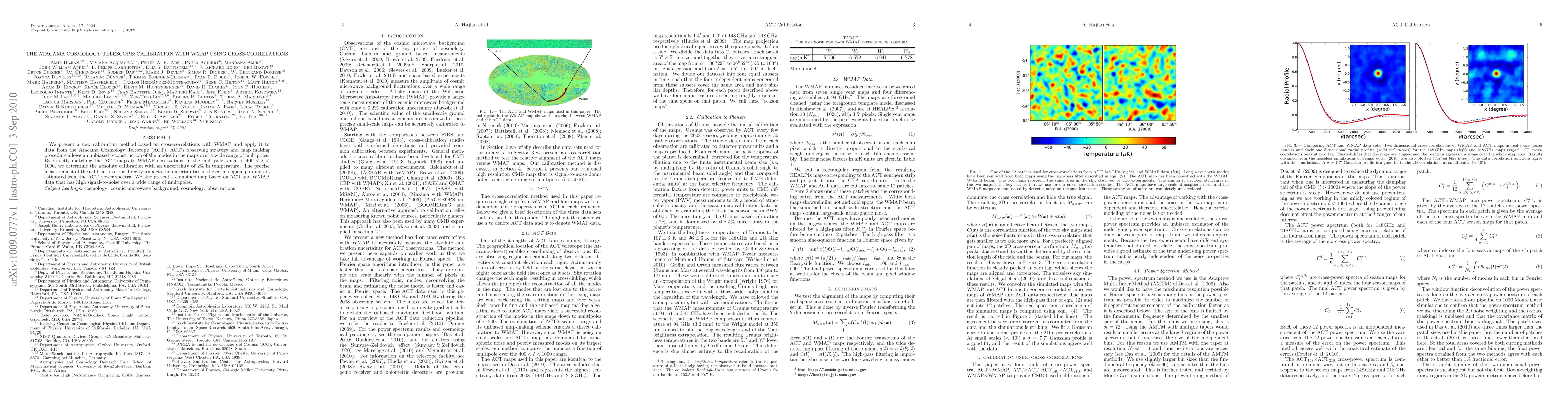 This paper introduces a novel calibration method for the Atacama Cosmology Telescope (ACT) using cross-correlations with WMAP data, achieving a 2% temperature calibration uncertainty. The method enables an unbiased reconstruction of map modes across wide multipoles, leading to improved cosmological parameter uncertainties from ACT power spectra and a combined ACT-WMAP map with high signal-to-noise.