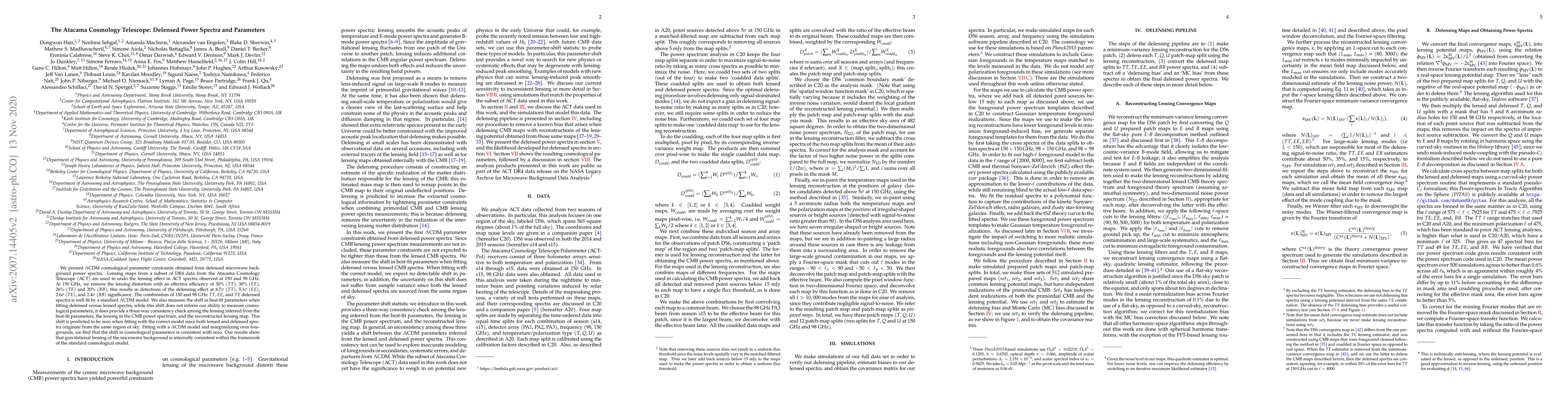This paper presents constraints on cosmological parameters from the Atacama Cosmology Telescope (ACT) using delensed microwave background power spectra. The study demonstrates effective delensing at multiple frequencies, confirming the consistency of gravitational lensing within the standard LCDM model.