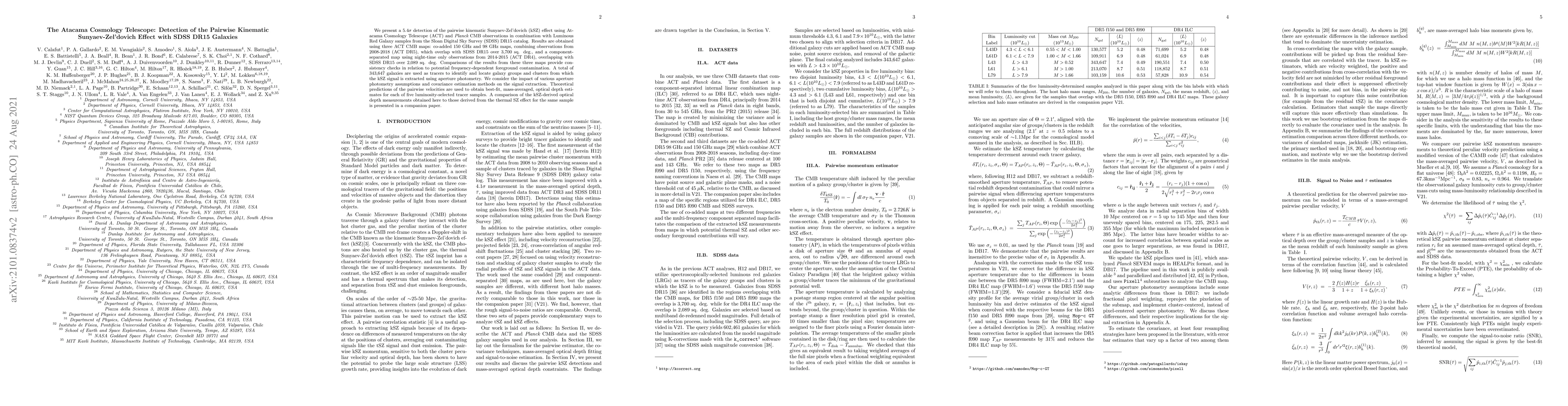 The Atacama Cosmology Telescope (ACT) detected the pairwise kinematic Sunyaev-Zel'dovich (kSZ) effect at 5.4σ using combined ACT and Planck CMB observations with SDSS DR15 Luminous Red Galaxies, identifying galaxy groups and clusters through aperture photometry. The results are consistent across three ACT maps, providing checks against foreground contamination.