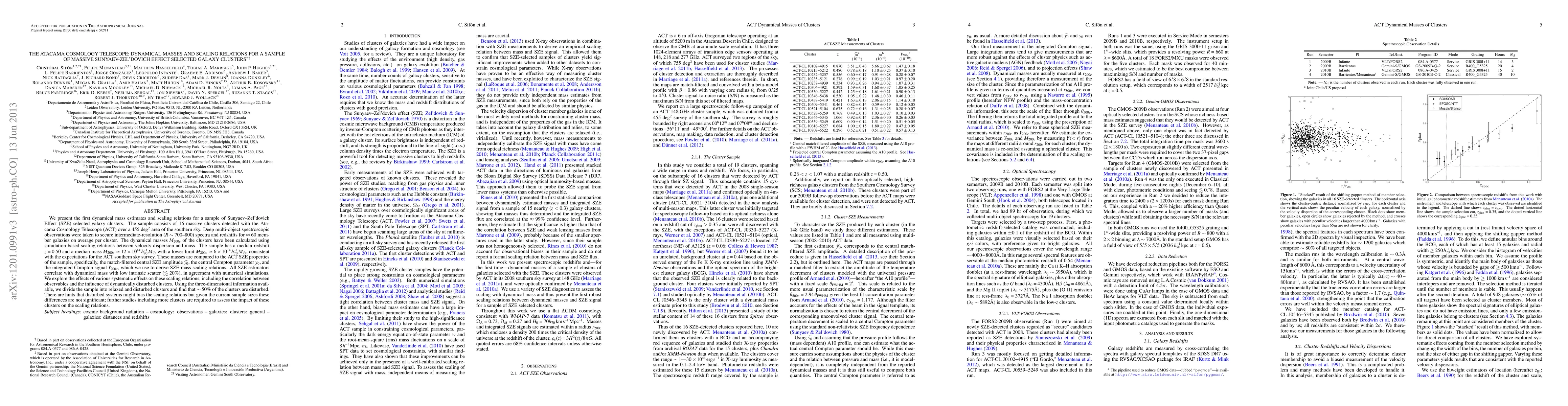 The Atacama Cosmology Telescope (ACT) has provided the first dynamical mass estimates and scaling relations for a sample of 16 massive Sunyaev-Zel'dovich effect (SZE) selected galaxy clusters. These clusters show low intrinsic scatter in scaling relations between SZE properties and dynamical mass, suggesting agreement with numerical simulations, though the impact of dynamically disturbed clusters remains uncertain.