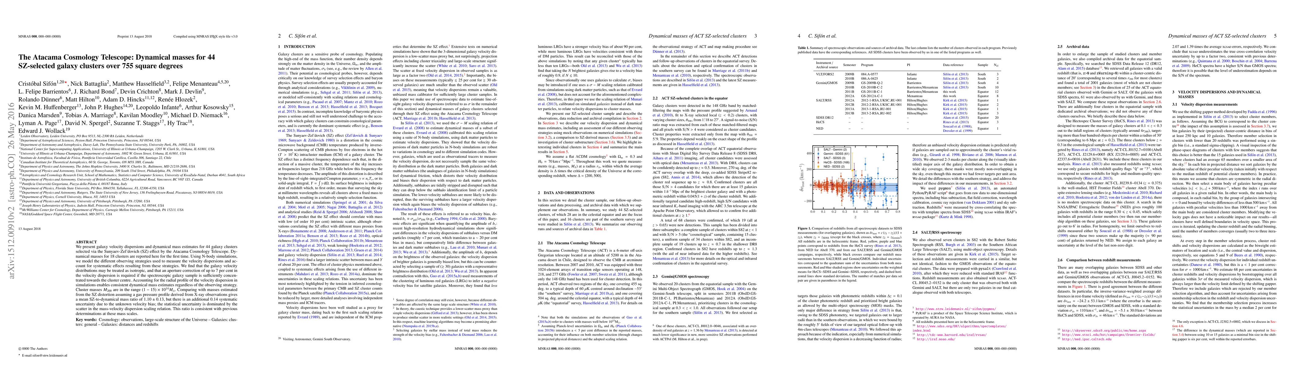 The Atacama Cosmology Telescope has provided dynamical mass estimates for 44 galaxy clusters via the Sunyaev-Zel'dovich effect, including first-time mass reports for 18 clusters. The study finds an average SZ-to-dynamical mass ratio of 1.10±0.13, consistent with previous findings but with an additional 0.14 systematic uncertainty.