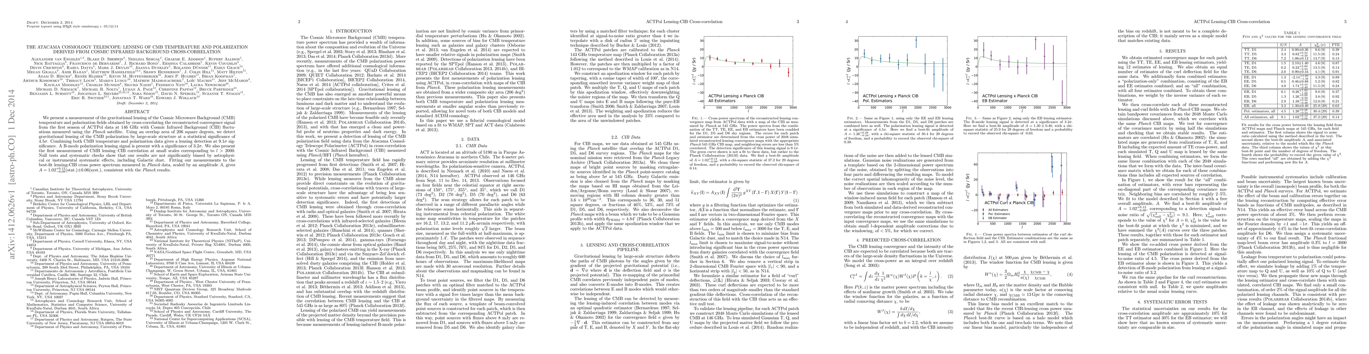 The Atacama Cosmology Telescope (ACT) measures gravitational lensing of the Cosmic Microwave Background (CMB) via cross-correlation with Cosmic Infrared Background (CIB) fluctuations, detecting lensing of CMB polarization at 4.5 sigma and combined CMB data at 9.1 sigma. The results are consistent with Planck data, indicating no significant systematic biases.