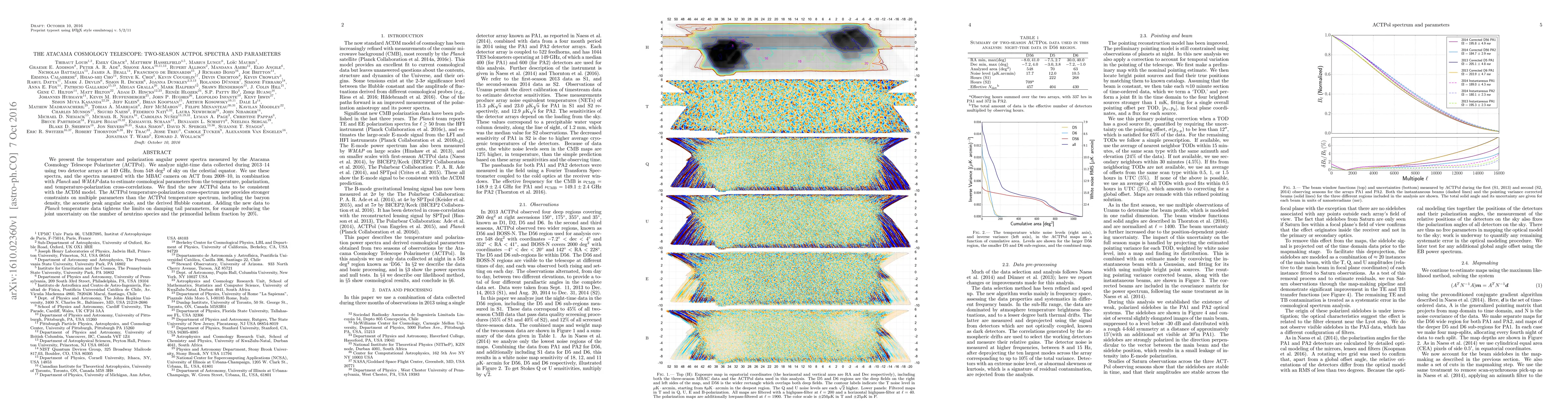 The Atacama Cosmology Telescope Polarimeter (ACTPol) collected temperature and polarization data over two seasons, providing improved constraints on cosmological parameters, including the Hubble constant and baryon density, when combined with Planck and WMAP data. The new ACTPol cross-spectrum data enhances parameter estimates and reduces uncertainties in neutrino species and primordial helium fraction.
