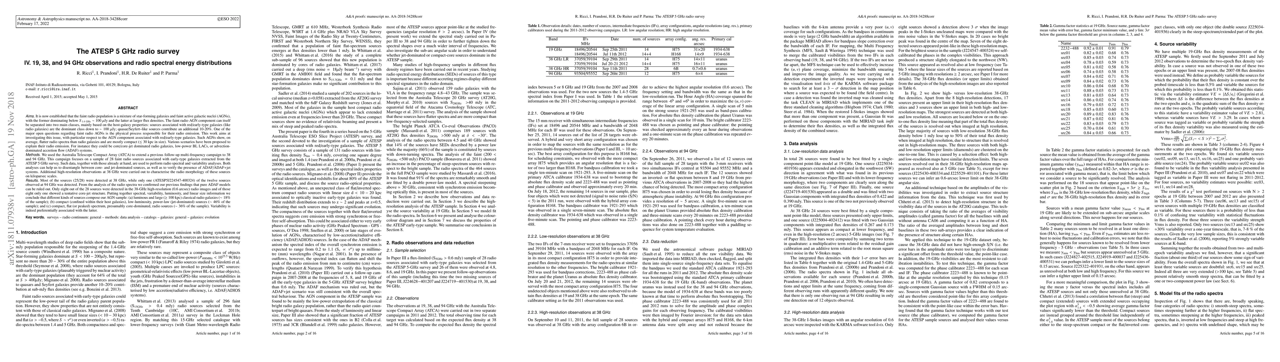 It is now established that the faint radio population is a mixture of star-forming galaxies and faint active galactic nuclei (AGNs), with the former dominating below S(1.4GHz) \sim 100 muJy and the latter at larger flux densities. The faint radio AGN component can itself be separated into two main classes, mainly based on the host-galaxy properties: sources associated with red/early-type galaxies (like radio galaxies) are the dominant class down to \sim 100 muJy; quasar/Seyfert--like sources contribute an additional 10-20\%. One of the major open questions regarding faint radio AGNs is the physical process responsible for their radio emission. This work aims at investigating this issue, with particular respect to the AGN component associated with red/early-type galaxies. Such AGNs show, on average, flatter radio spectra than radio galaxies and are mostly compact (<= 30 kpc in size). Various scenarios have been proposed to explain their radio emission. For instance they could be core/core-jet dominated radio galaxies, low-power BL LACs, or advection-dominated accretion flow (ADAF) systems. We used the Australia Telescope Compact Array (ATCA) to extend a previous follow-up multi-frequency campaign to 38 and 94 GHz. (abridged)
