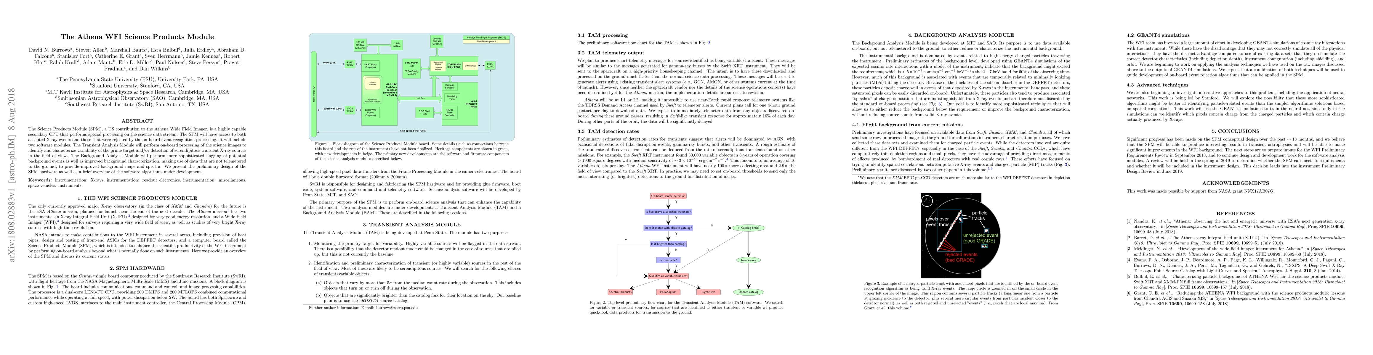 The Science Products Module (SPM), a US contribution to the Athena Wide Field Imager, is a highly capable secondary CPU that performs special processing on the science data stream. The SPM will have access to both accepted X-ray events and those that were rejected by the on-board event recognition processing. It will include two software modules. The Transient Analysis Module will perform on-board processing of the science images to identify and characterize variability of the prime target and/or detection of serendipitous transient X-ray sources in the field of view. The Background Analysis Module will perform more sophisticated flagging of potential background events as well as improved background characterization, making use of data that are not telemetered to the ground, to provide improved background maps and spectra. We present the preliminary design of the SPM hardware as well as a brief overview of the software algorithms under development.