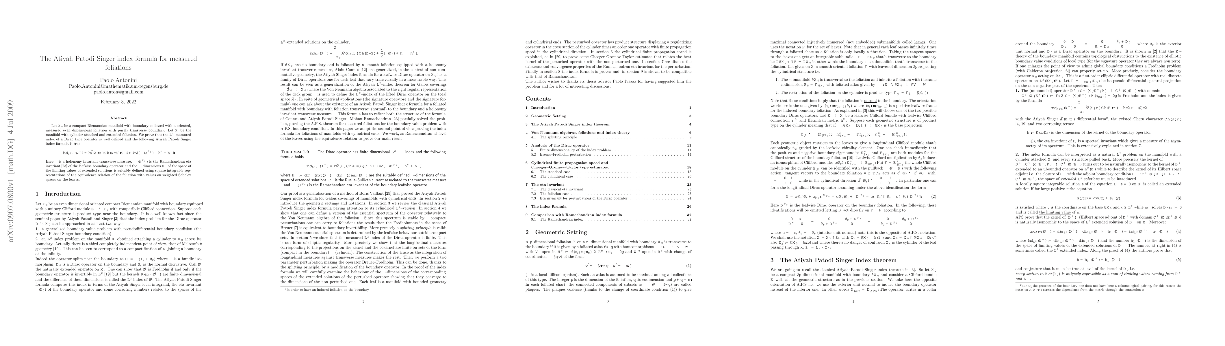 This paper proves a formula for calculating the index of a Dirac operator on a foliated manifold, extending previous results to measured foliations with boundary.