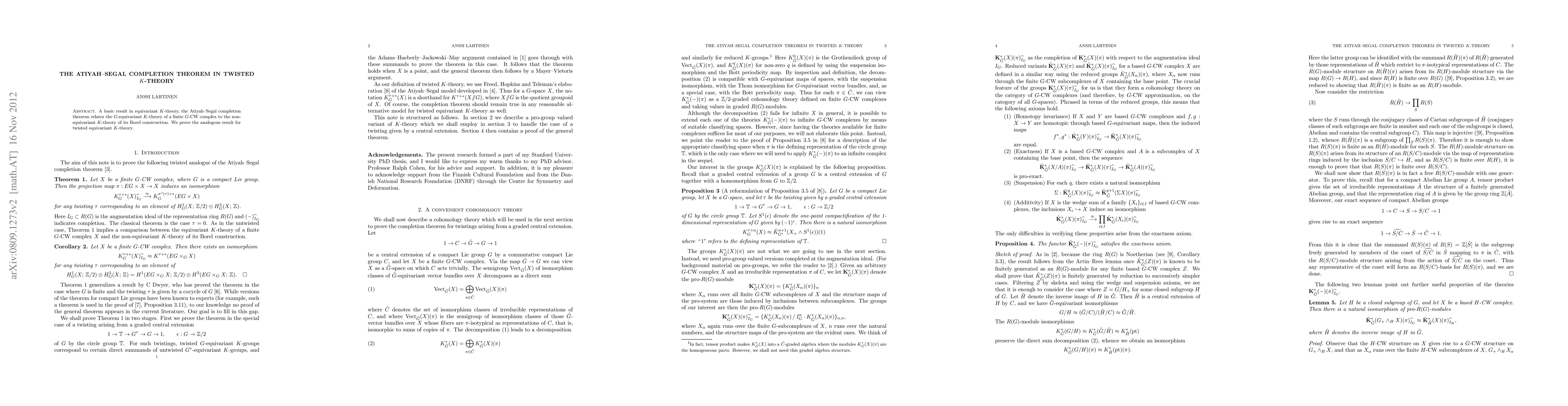 The paper proves the Atiyah-Segal completion theorem for equivariant twisted K-theory in the context of an arbitrary compact Lie group and general twistings. It fills a gap in the literature by providing the first proof for the general result, which extends C. Dwyer's earlier work on finite groups with restricted twistings.