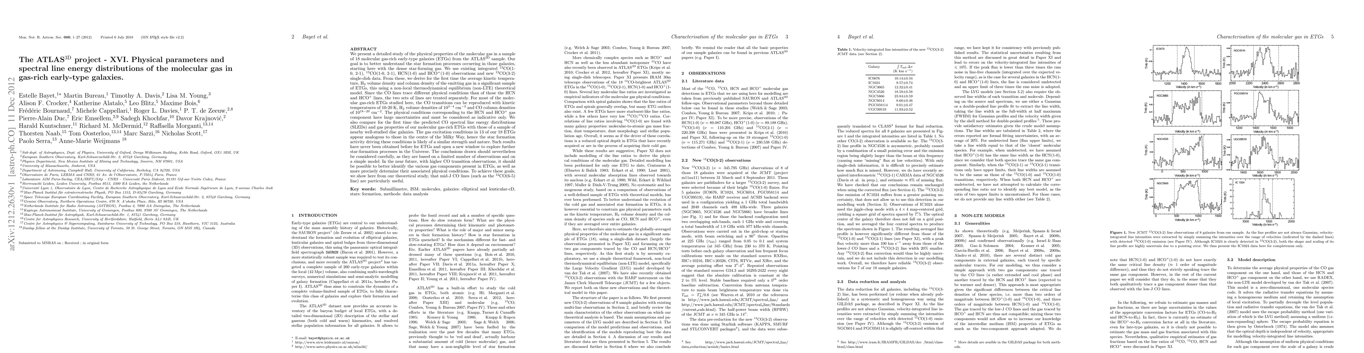 [Abridged] We present a detailed study of the physical properties of the molecular gas in a sample of 18 molecular gas-rich early-type galaxies (ETGs) from the ATLAS$ 3D sample. Our goal is to better understand the star formation processes occurring in those galaxies, starting here with the dense star-forming gas. We use existing integrated $^{12}$CO(1-0, 2-1), $^{13}$CO(1-0, 2-1), HCN(1-0) and HCO$^{+}$(1-0) observations and present new $^{12}$CO(3-2) single-dish data. From these, we derive for the first time the average kinetic temperature, H$_{2}$ volume density and column density of the emitting gas, this using a non-LTE theoretical model. Since the CO lines trace different physical conditions than of those the HCN and HCO$^{+}$ lines, the two sets of lines are treated separately. We also compare for the first time the predicted CO spectral line energy distributions (SLEDs) and gas properties of our molecular gas-rich ETGs with those of a sample of nearby well-studied disc galaxies. The gas excitation conditions in 13 of our 18 ETGs appear analogous to those in the centre of the Milky Way. Such results have never been obtained before for ETGs and open a new window to explore further star-formation processes in the Universe. The conclusions drawn should nevertheless be considered carefully, as they are based on a limited number of observations and on a simple model. In the near future, with higher CO transition observations, it should be possible to better identify the various gas components present in ETGs, as well as more precisely determine their associated physical conditions. To achieve these goals, we show here from our theoretical study, that mid-J CO lines (such as the $^{12}$CO(6-5) line) are particularly useful.