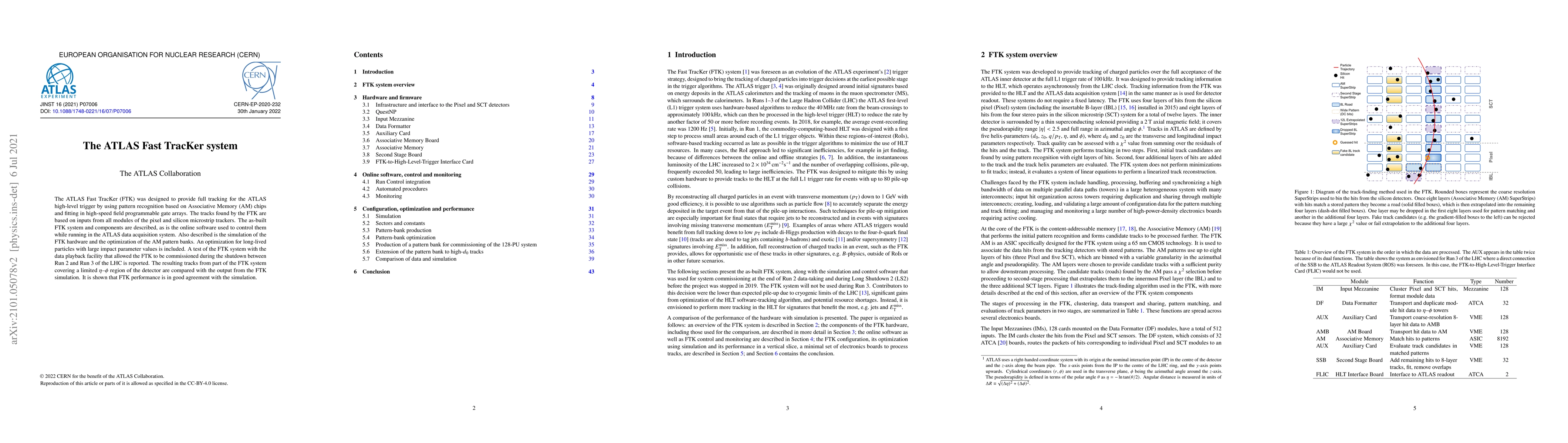 The ATLAS Fast TracKer (FTK) system employs pattern recognition and associative memory chips for high-speed tracking in the ATLAS high-level trigger. The FTK system's performance was tested and shown to align well with simulations, demonstrating its effectiveness in tracking long-lived particles.