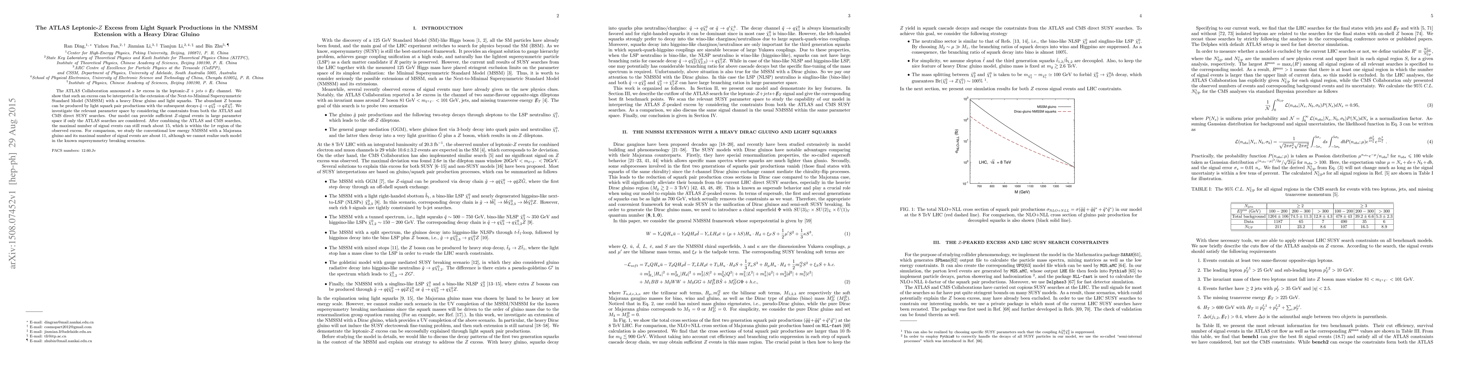 The ATLAS Collaboration observed a 3$\sigma$ excess in the leptonic-$Z+jets+\met$ channel, which can be explained by light squark productions in an NMSSM extension featuring a heavy Dirac gluino. The model accommodates the observed excess while satisfying constraints from ATLAS and CMS direct SUSY searches.