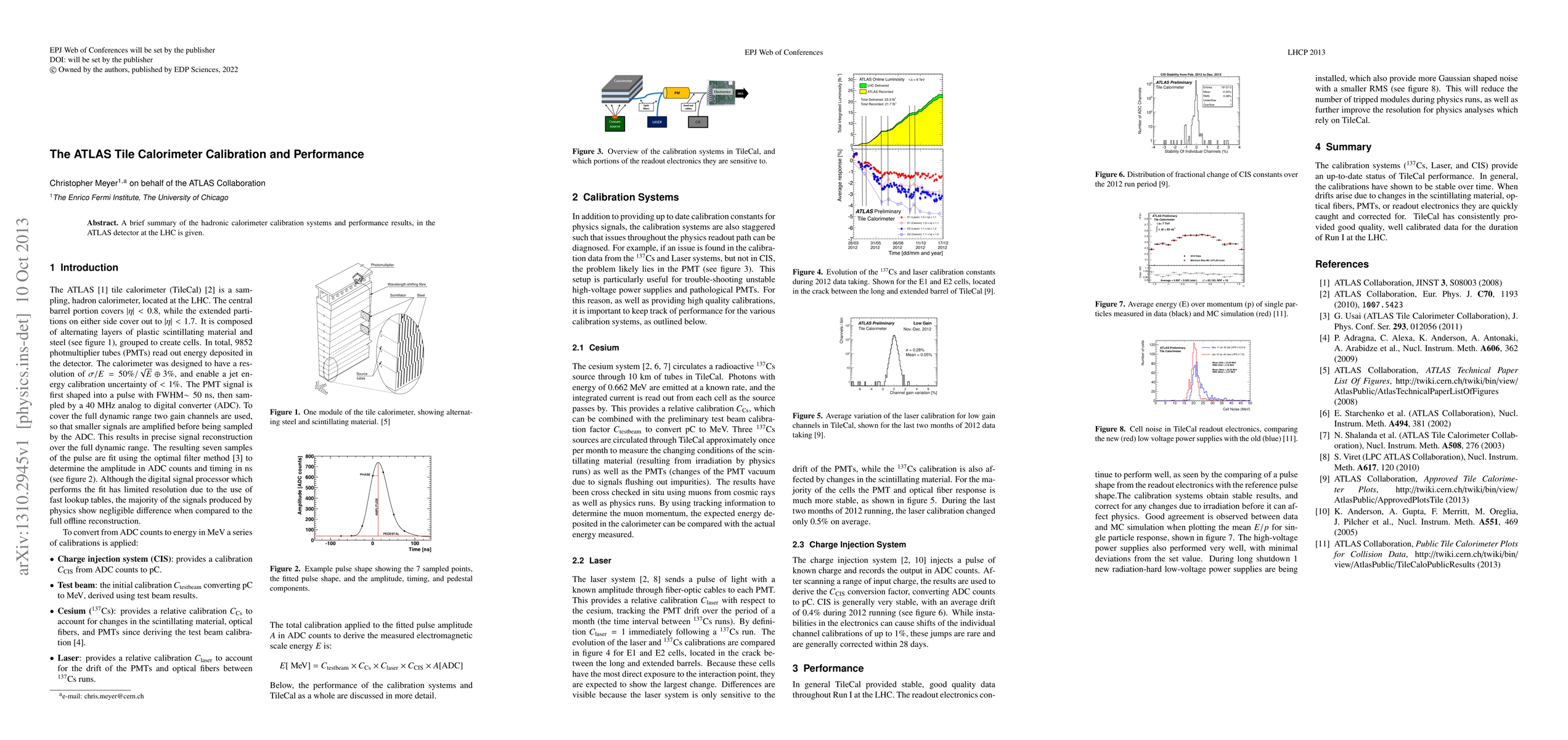 The paper presents detailed calibration systems and performance results for the ATLAS Tile Calorimeter, emphasizing staggered calibration systems for efficient troubleshooting and maintaining high-quality data throughout LHC runs.