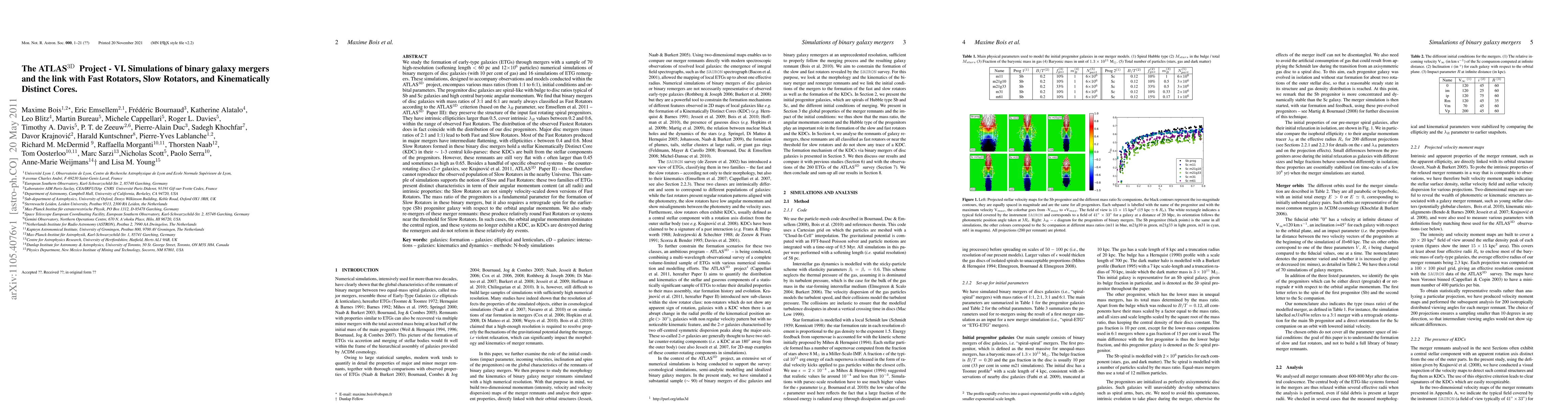 The Atlas3D Project investigates early-type galaxy formation via binary mergers, finding that high-mass ratio mergers (3:1 and 6:1) typically produce Fast Rotators, while lower mass ratios (2:1 and 1:1) yield both Fast and Slow Rotators. Slow Rotators often possess Kinematically Distinct Cores, but the simulations do not fully match the observed population.