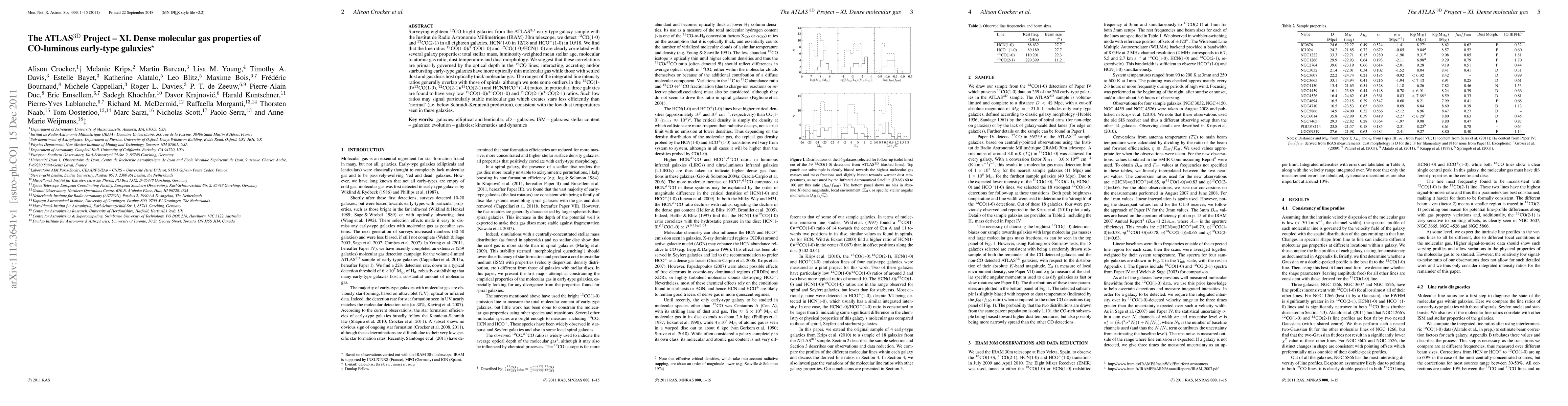 The Atlas3D Project investigates dense molecular gas in CO-luminous early-type galaxies, finding correlations between line ratios and galaxy properties like stellar mass and dust temperature. These correlations suggest that molecular gas optical depth varies with galaxy activity and structure, with some galaxies showing unusually low CO line ratios indicative of stable, less efficient star-forming gas.