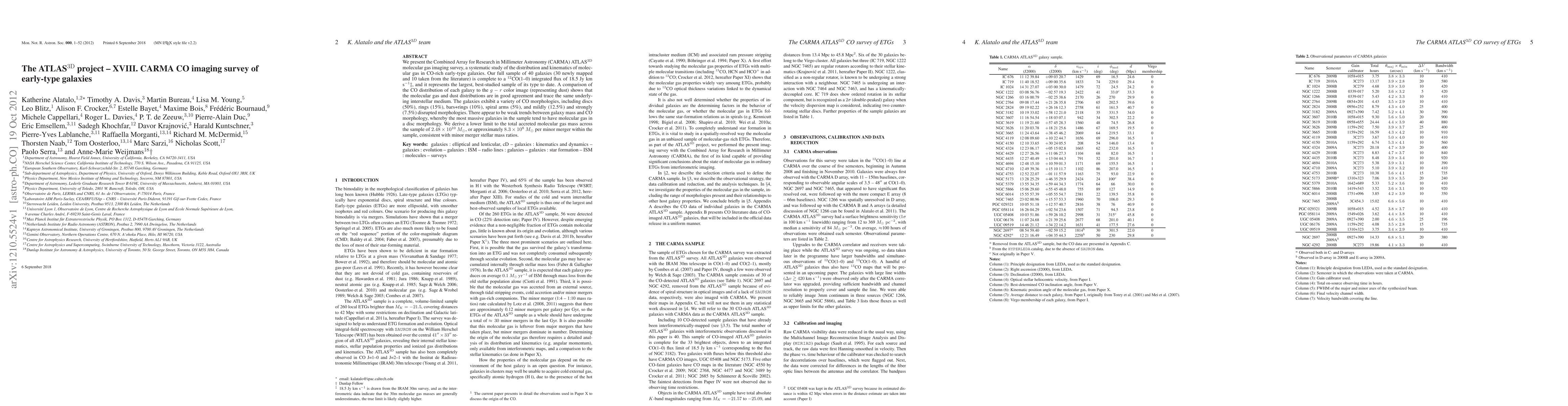 The ATLAS3D project's CARMA CO imaging survey reveals a comprehensive study of molecular gas in 40 CO-rich early-type galaxies, showing that molecular gas and dust distributions align closely. The survey finds diverse CO morphologies and suggests a correlation between galaxy mass and disc-shaped gas distribution.