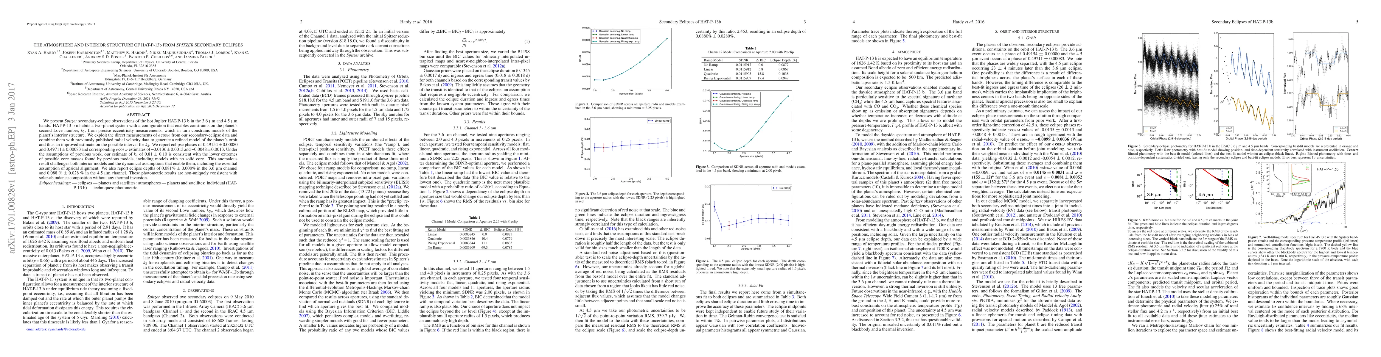 We present {\em Spitzer} secondary-eclipse observations of the hot Jupiter HAT-P-13 b in the 3.6 {\micron} and 4.5 {\micron} bands. HAT-P-13 b inhabits a two-planet system with a configuration that enables constraints on the planet's second Love number, \math{k\sb{2}}, from precise eccentricity measurements, which in turn constrains models of the planet's interior structure. We exploit the direct measurements of \math{e \cos \omega} from our secondary-eclipse data and combine them with previously published radial velocity data to generate a refined model of the planet's orbit and thus an improved estimate on the possible interval for \math{k\sb{2}}. We report eclipse phases of \math{0.49154 \pm 0.00080} and \math{0.49711 \pm 0.00083} and corresponding \math{e \cos \omega} estimates of \math{-0.0136 \pm 0.0013} and \math{-0.0048 \pm 0.0013}. Under the assumptions of previous work, our estimate of \math{k\sb{2}} of 0.81 {\pm} 0.10 is consistent with the lower extremes of possible core masses found by previous models, including models with no solid core. This anomalous result challenges both interior models and the dynamical assumptions that enable them, including the essential assumption of apsidal alignment. We also report eclipse depths of 0.081\% {\pm} 0.008\% in the 3.6 {\micron} channel and 0.088 \% {\pm} 0.028 \% in the 4.5 {\micron} channel. These photometric results are non-uniquely consistent with solar-abundance composition without any thermal inversion.