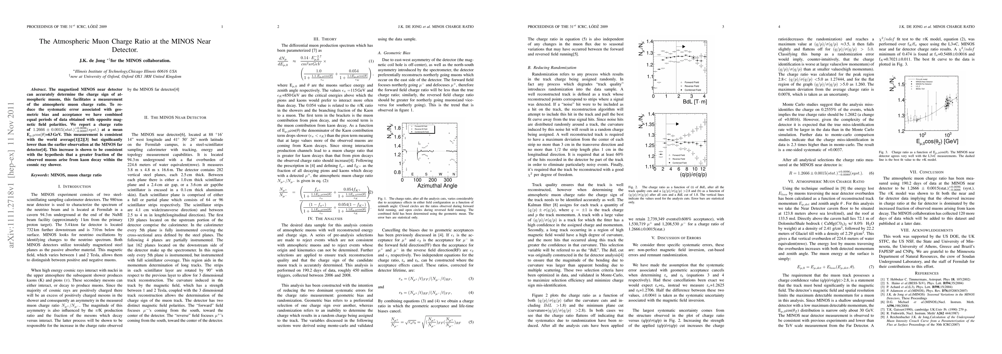 The MINOS collaboration used a combination of data from the Near Detector cavern floor and the Far Detector to measure the atmospheric muon charge ratio.