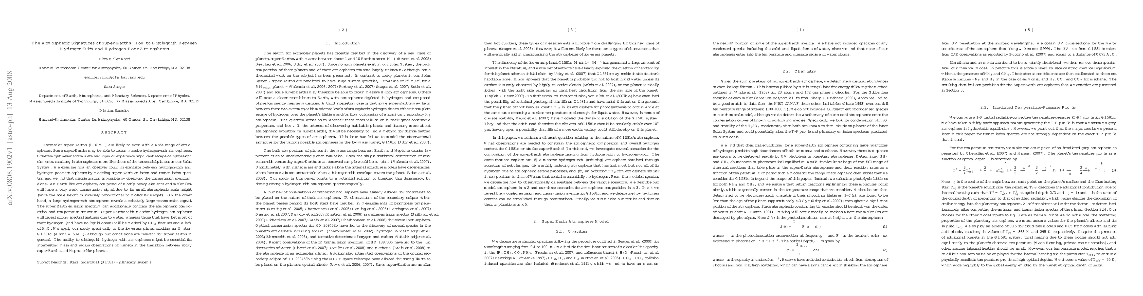 Extrasolar super-Earths (1-10 M$_{\earth}$) are likely to exist with a wide range of atmospheres. Some super-Earths may be able to retain massive hydrogen-rich atmospheres. Others might never accumulate hydrogen or experience significant escape of lightweight elements, resulting in atmospheres more like those of the terrestrial planets in our Solar System. We examine how an observer could differentiate between hydrogen-rich and hydrogen-poor atmospheres by modeling super-Earth emission and transmission spectra, and we find that discrimination is possible by observing the transmission spectrum alone. An Earth-like atmosphere, composed of mostly heavy elements and molecules, will have a very weak transmission signal due to its small atmospheric scale height (since the scale height is inversely proportional to molecular weight). On the other hand, a large hydrogen-rich atmosphere reveals a relatively large transmission signal. The super Earth emission spectrum can additionally contrain the atmospheric composition and temperature structure. Super-Earths with massive hydrogen atmospheres will reveal strong spectral features due to water, whereas those that have lost most of their hydrogen (and have no liquid ocean) will be marked by CO$_2$ features and a lack of H$_2$O. We apply our study specifically to the low-mass planet orbiting an M star, Gl 581c ($M sin i$ = 5 M$_{\earth}$), although our conclusions are relevant for super-Earths in general. The ability to distinguish hydrogen-rich atmospheres might be essential for interpreting mass and radius observations of planets in the transition between rocky super-Earths and Neptune-like planets.