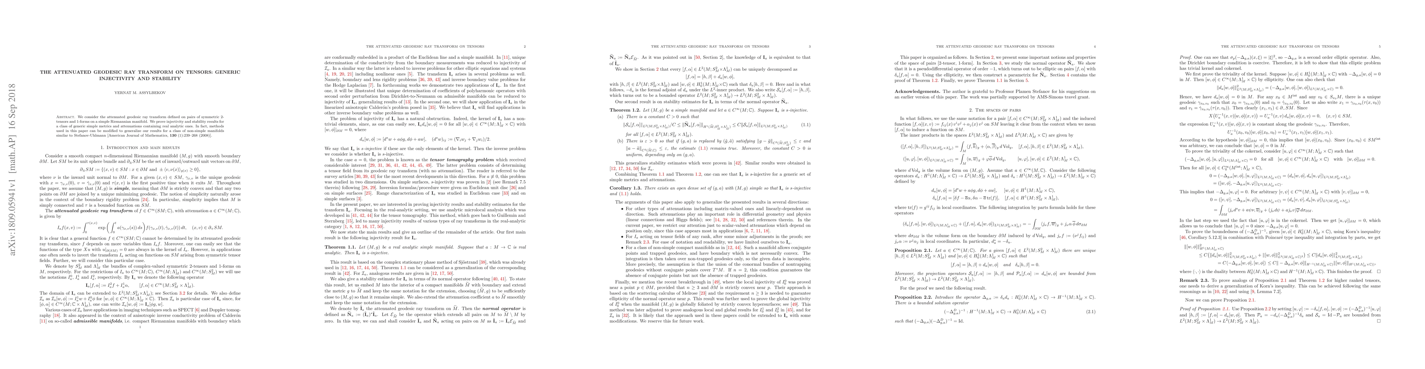 This paper investigates the attenuated geodesic ray transform on symmetric 2-tensors and 1-forms in simple Riemannian manifolds, proving generic injectivity and stability for real analytic metrics and attenuations. The methods can also be extended to non-simple manifolds.