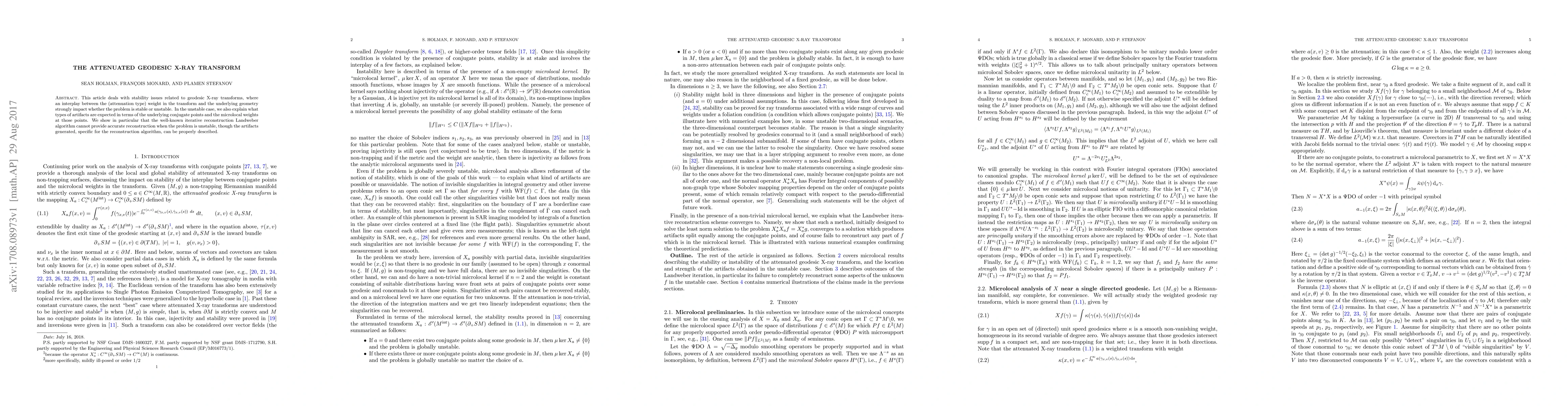 This paper investigates the stability of the attenuated geodesic X-ray transform, highlighting the influence of attenuation weights and geometry on stability. It reveals that instability leads to specific artifacts tied to conjugate points and microlocal weights, and demonstrates that the Landweber algorithm fails in reconstruction under unstable conditions.