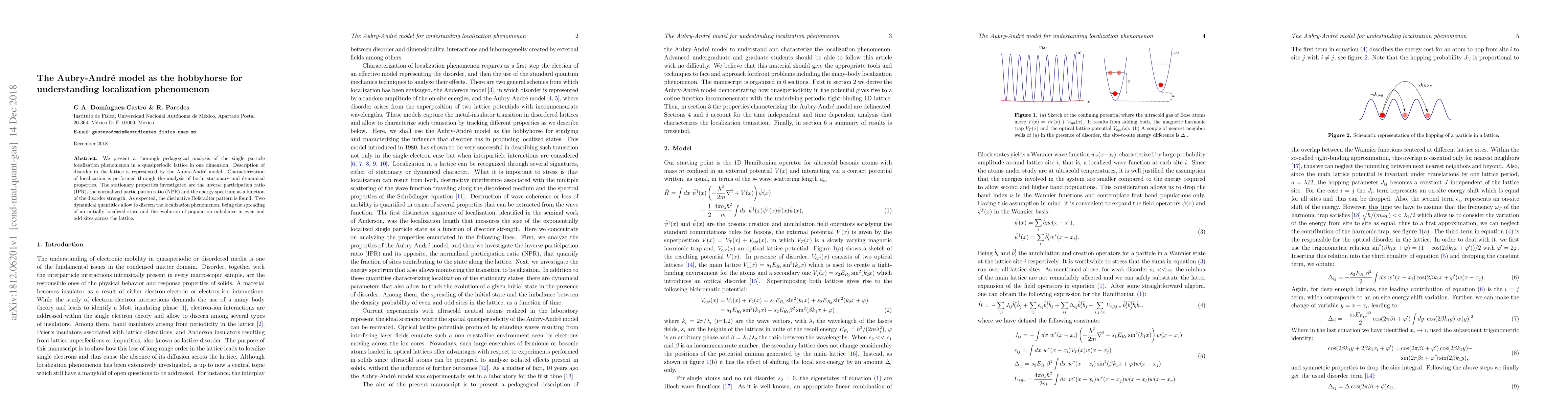 We present a thorough pedagogical analysis of the single particle localization phenomenon in a quasiperiodic lattice in one dimension. Description of disorder in the lattice is represented by the Aubry-Andr\'e model. Characterization of localization is performed through the analysis of both, stationary and dynamical properties. The stationary properties investigated are the inverse participation ratio (IPR), the normalized participation ratio (NPR) and the energy spectrum as a function of the disorder strength. As expected, the distinctive Hofstadter pattern is found. Two dynamical quantities allow discerning the localization phenomenon, being the spreading of an initially localized state and the evolution of population imbalance in even and odd sites across the lattice.