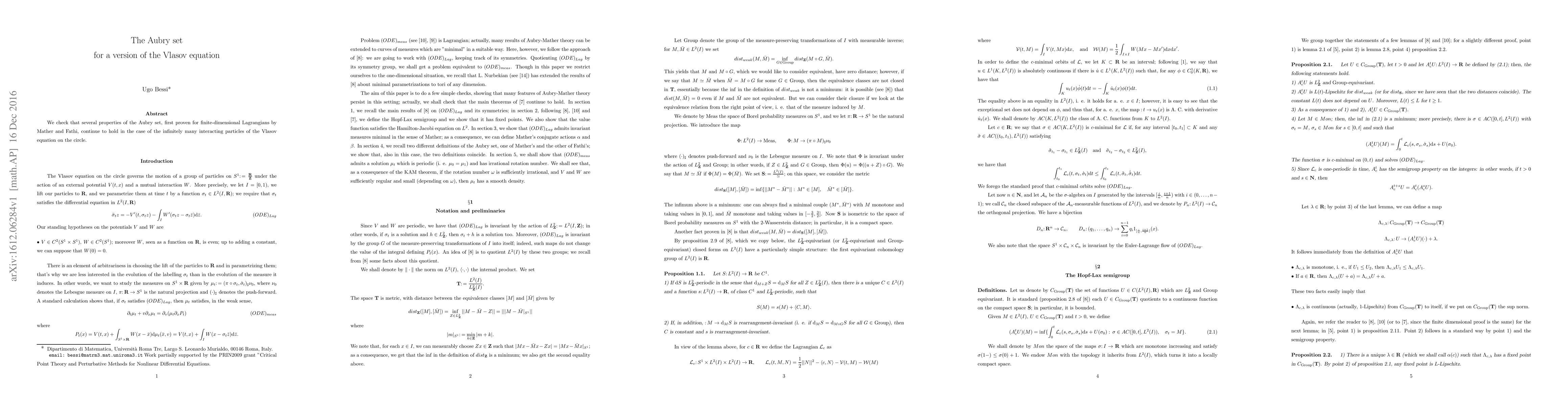 Research confirms properties of Aubry set for Vlasov equation on circle, with implications for understanding particle interactions in high-dimensional space.