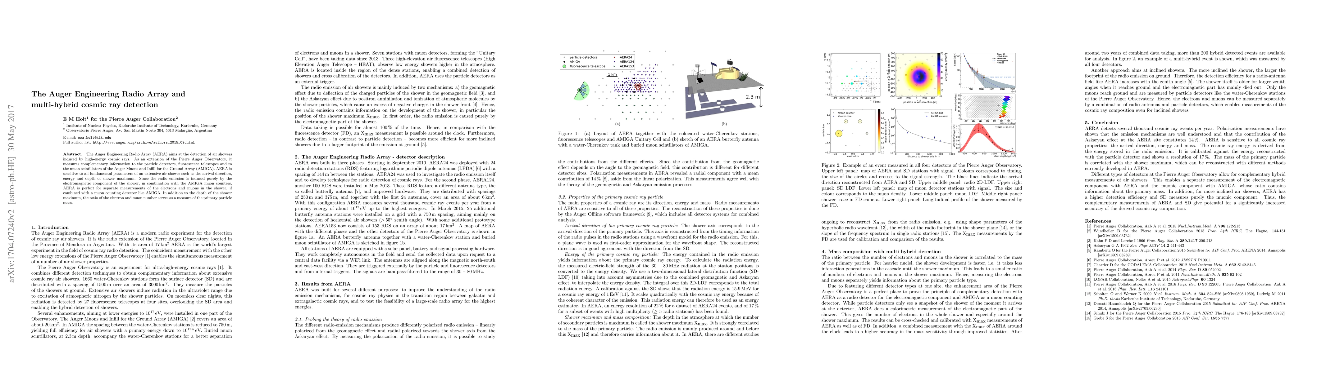The Auger Engineering Radio Array (AERA) detects air showers from high-energy cosmic rays, providing complementary data to the Pierre Auger Observatory's particle detectors and muon counters. It measures fundamental air shower parameters and, when combined with AMIGA muon counters, allows separate measurements of electrons and muons, aiding in the determination of primary particle mass.