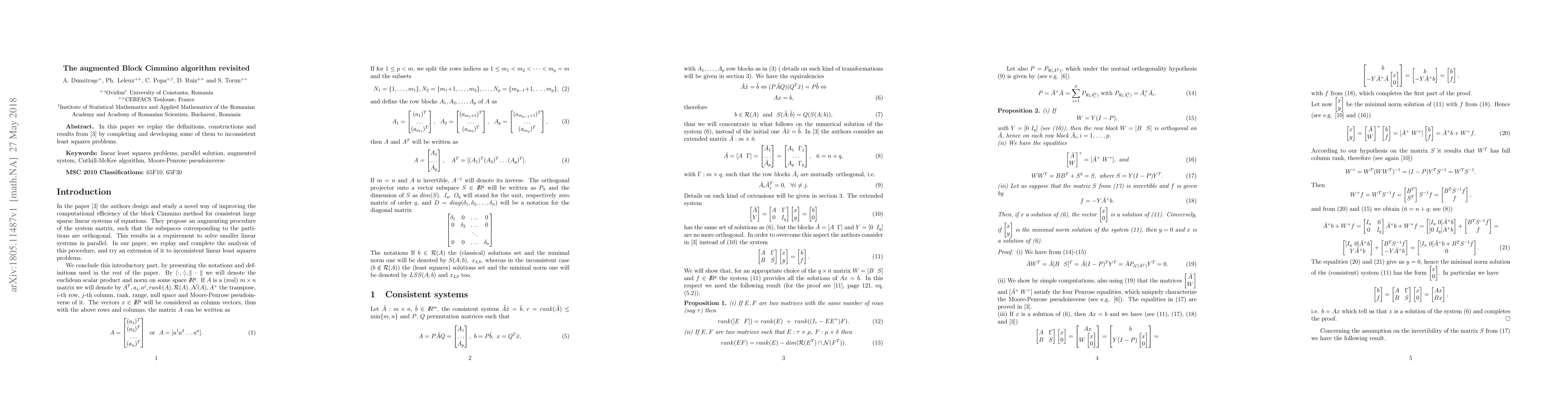 In this paper we replay the definitions, constructions and results from [SIAM J. Sci. Comp., 37(3)(2015), A1248-A1269] by completing and developing some of them to inconsistent least squares problems.