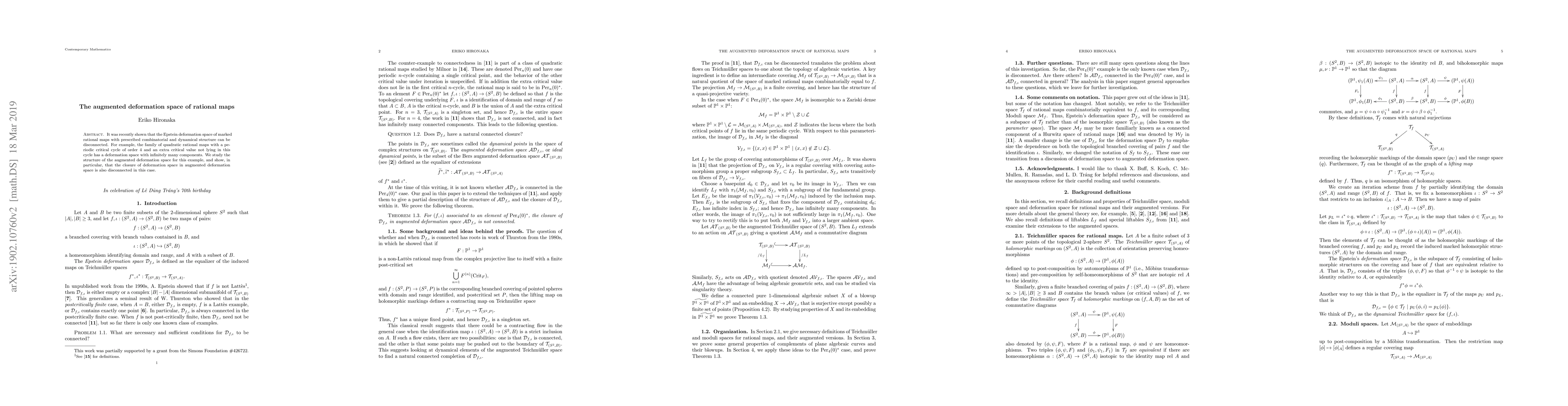 The Epstein deformation space parameterizes marked rational maps with prescribed combinatorial and dynamical structure. For the family of quadratic rational maps with a periodic critical cycle of order 4 and an extra critical point not lying in this cycle, S. Koch and I recently showed that the deformation space has infinitely many connected components. In the present paper we study the augmented deformation space for this example, and show, in particular, that the closure of deformation space in augmented deformation space is also disconnected in this case.