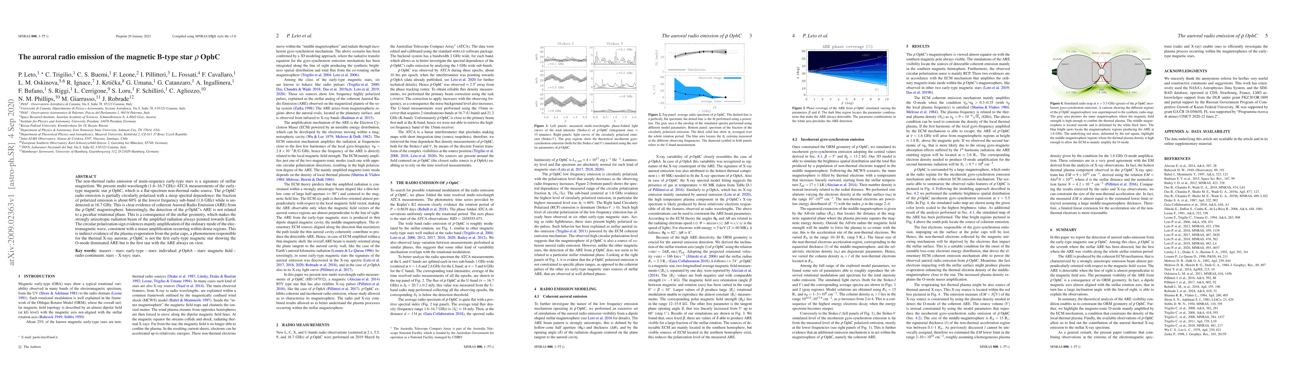 The non-thermal radio emission of main-sequence early-type stars is a signature of stellar magnetism. We present multi-wavelength (1.6-16.7 GHz) ATCA measurements of the early-type magnetic star rho OphC, which is a flat-spectrum non-thermal radio source. The rho OphC radio emission is partially circularly polarized with a steep spectral dependence: the fraction of polarized emission is about 60% at the lowest frequency sub-band (1.6 GHz) while is undetected at 16.7 GHz. This is clear evidence of coherent Auroral Radio Emission (ARE) from the rho OphC magnetosphere. Interestingly, the detection of the rho OphC's ARE is not related to a peculiar rotational phase. This is a consequence of the stellar geometry, which makes the strongly anisotropic radiation beam of the amplified radiation always pointed towards Earth. The circular polarization sign evidences mainly amplification of the ordinary mode of the electromagnetic wave, consistent with a maser amplification occurring within dense regions. This is indirect evidence of the plasma evaporation from the polar caps, a phenomenon responsible for the thermal X-ray aurorae. rho OphC is not the first early-type magnetic star showing the O-mode dominated ARE but is the first star with the ARE always on view.
