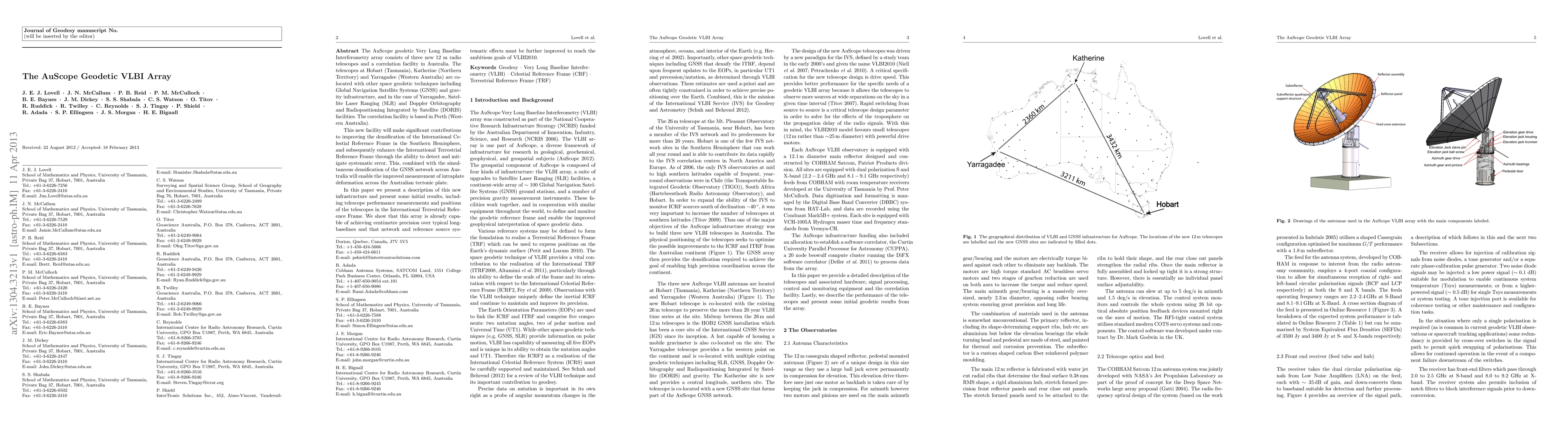 The AuScope geodetic VLBI array, comprising three 12m radio telescopes in Australia, achieves centimetre-level precision in baseline measurements, significantly enhancing the International Celestial Reference Frame in the Southern Hemisphere. Initial results demonstrate capability to improve intraplate deformation measurement across the Australian tectonic plate, with further error reduction needed to meet VLBI2010 goals.