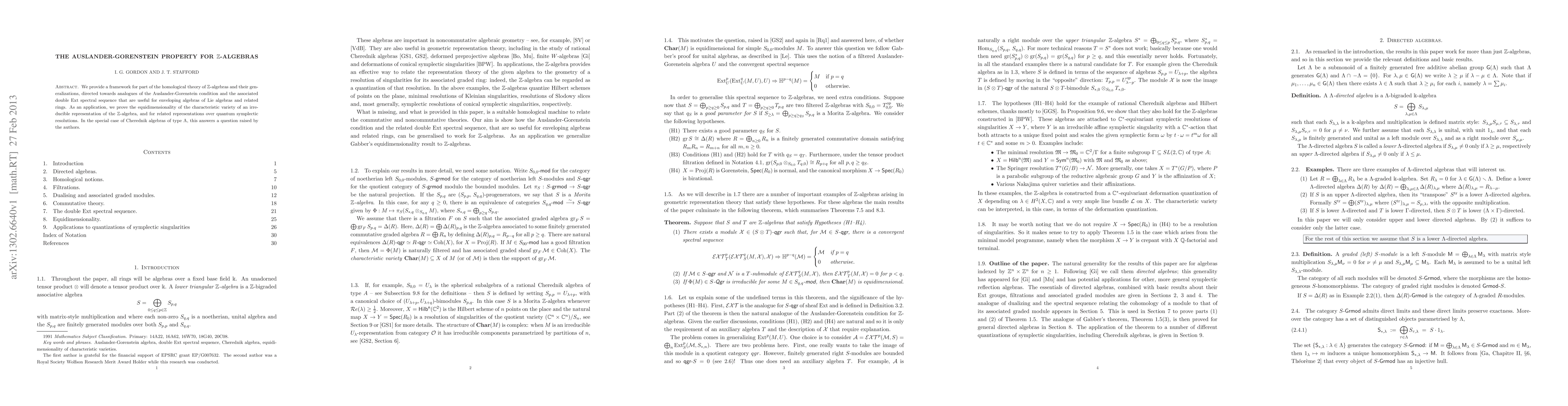 We provide a framework for part of the homological theory of Z-algebras and their generalizations, directed towards analogues of the Auslander-Gorenstein condition and the associated double Ext spectral sequence that are useful for enveloping algebras of Lie algebras and related rings. As an application, we prove the equidimensionality of the characteristic variety of an irreducible representation of the Z-algebra, and for related representations over quantum symplectic resolutions. In the special case of Cherednik algebras of type A, this answers a question raised by the authors.