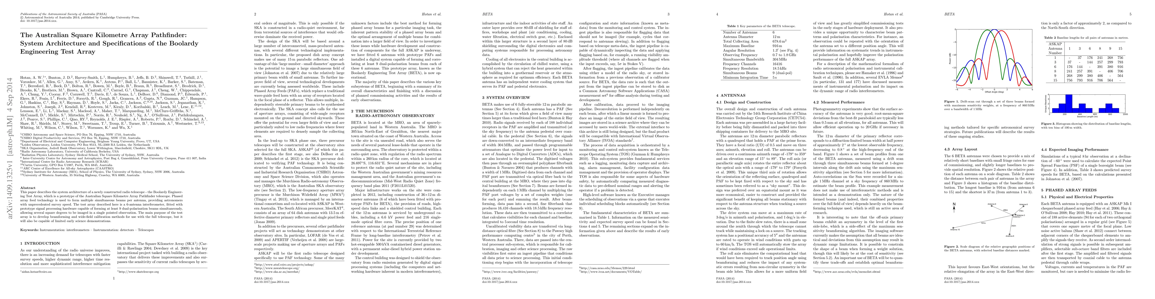 This paper details the system architecture of the Boolardy Engineering Test Array, a prototype for the Australian Square Kilometre Array Pathfinder, featuring phased array feeds for multiple simultaneous beams and early science demonstrations. The 6-antenna interferometer can form at least 9 dual-polarisation beams, enabling rapid survey speeds.