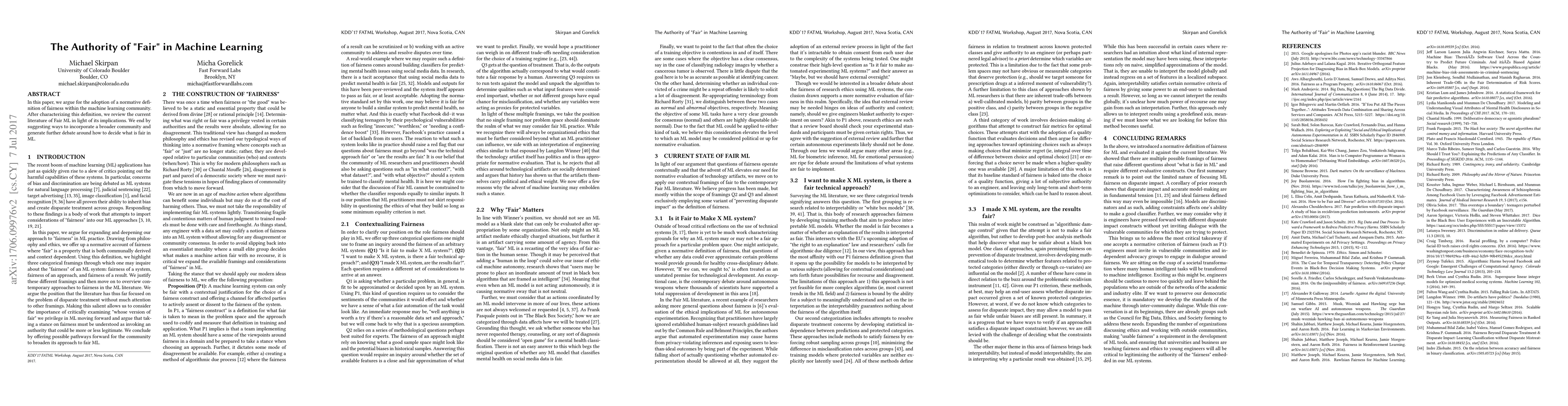 The paper adopts a normative definition of fairness in machine learning, reviewing current literature and suggesting ways to engage a broader community in debating fairness criteria.
