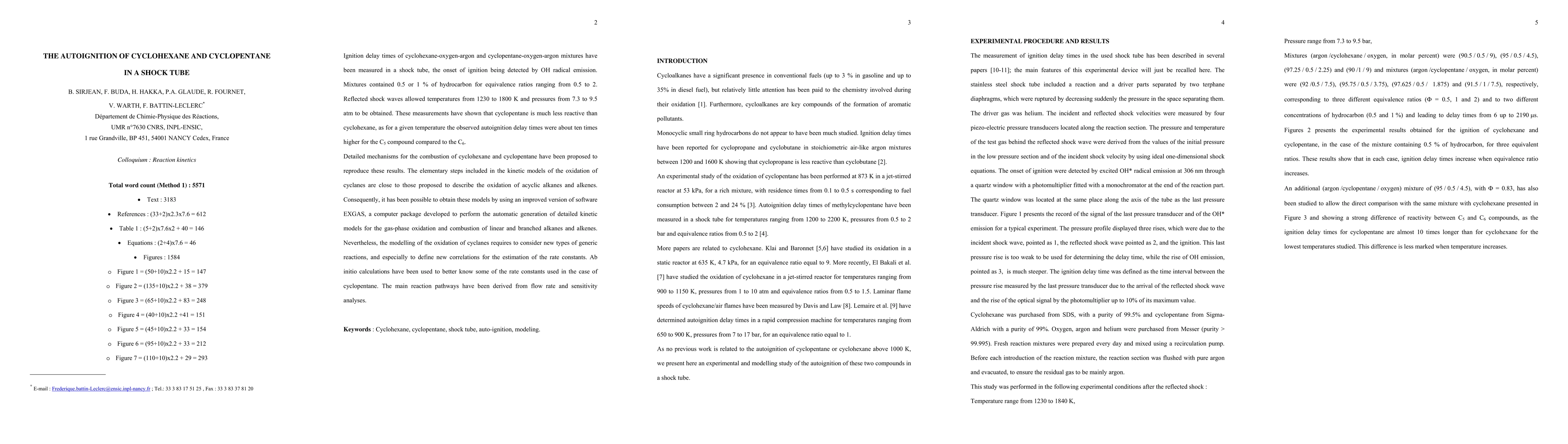 This study measures ignition delay times for cyclopentane and cyclohexane in shock tube experiments, revealing that cyclopentane is significantly less reactive than cyclohexane. Detailed kinetic models for their combustion were developed using an improved version of EXGAS software, incorporating new generic reactions and rate constant estimations, validated by ab initio calculations.