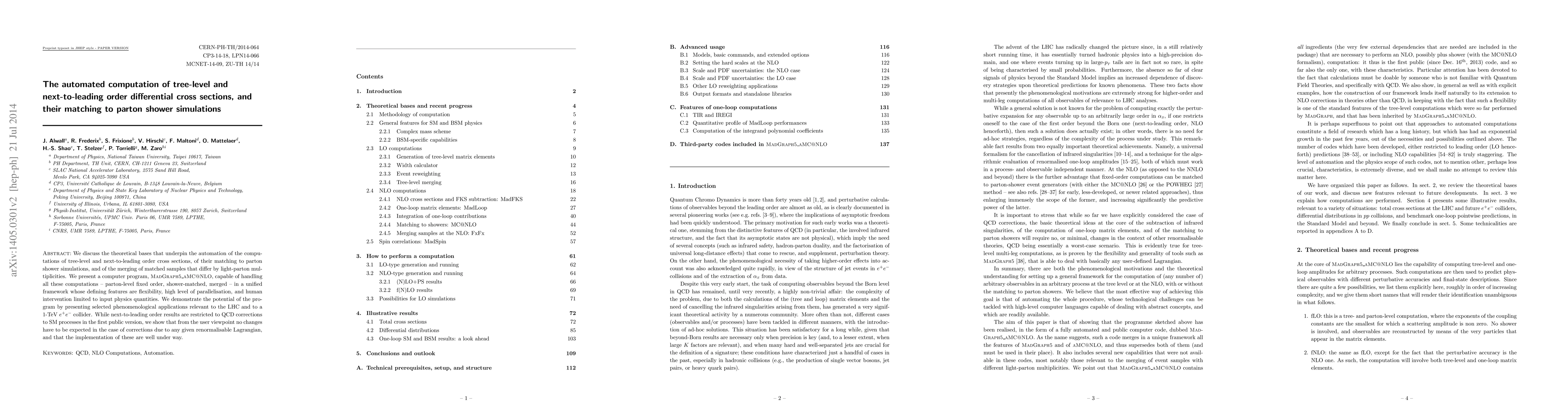 The paper introduces MadGraph5_aMC@NLO, a computer program automating tree-level and next-to-leading order cross section computations, and their merging with parton shower simulations. It demonstrates the program's capabilities through LHC and 1 TeV e+e- collider applications, showing potential for diverse renormalizable Lagrangians beyond initial SM QCD corrections.