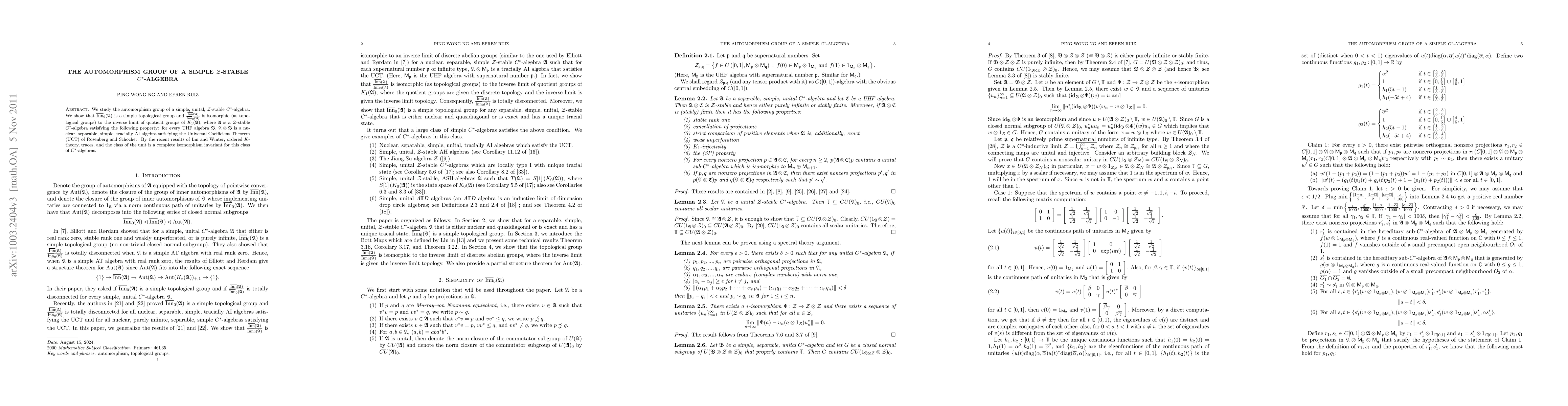 This paper studies the automorphism group of simple Z-stable C*-algebras, generalizing previous results to a broader class of algebras that satisfy specific conditions related to K-theory and traces.