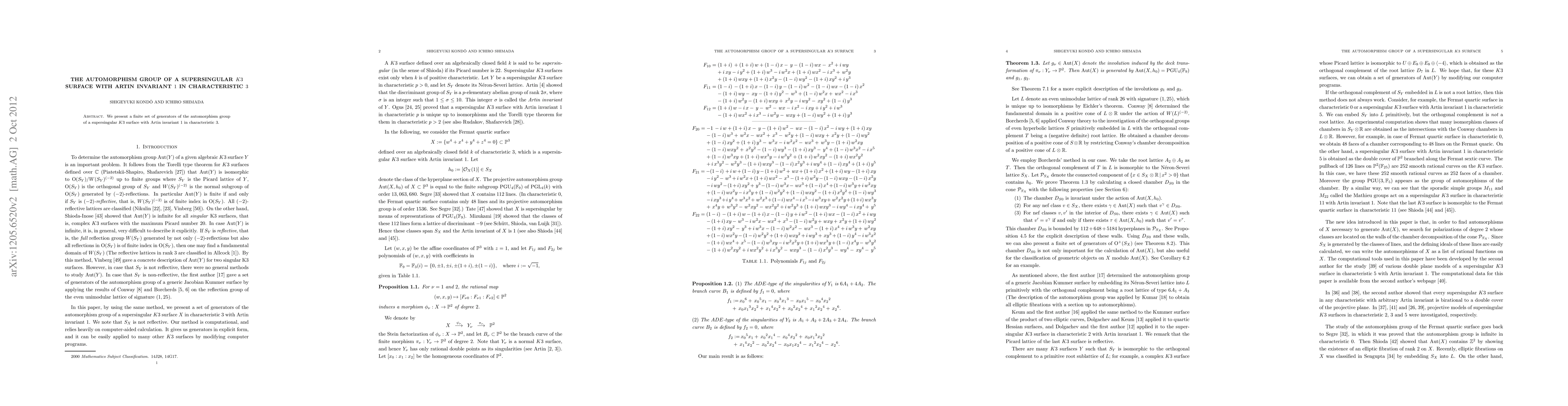 Title: The automorphism group of a supersingular K3 surface with Artin invariant 1 in characteristic 3 Summary: This paper identifies a finite set of generators for the automorphism group of a supersingular K3 surface characterized by an Artin invariant of 1 in the field of characteristic 3.