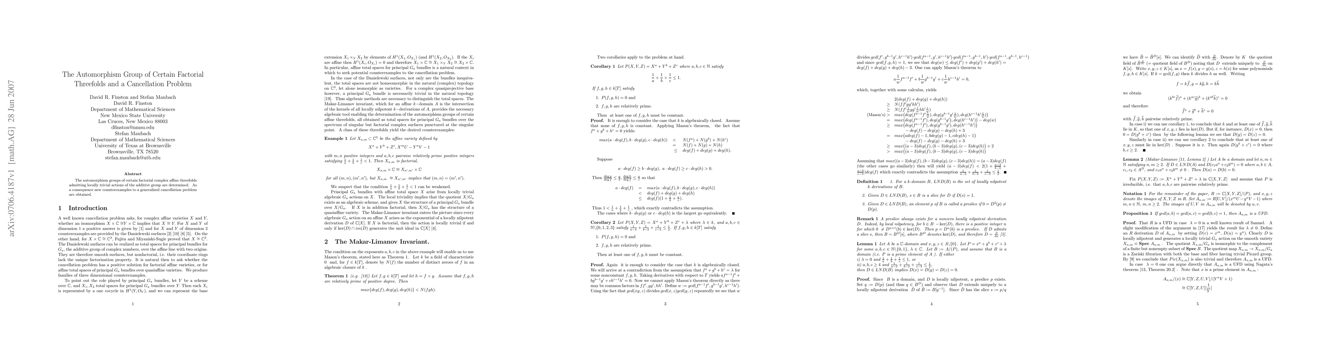 Summary: This paper determines the automorphism groups of specific factorial complex affine threefolds with locally trivial additive group actions, and uses these findings to provide new counterexamples to a generalized cancellation problem.