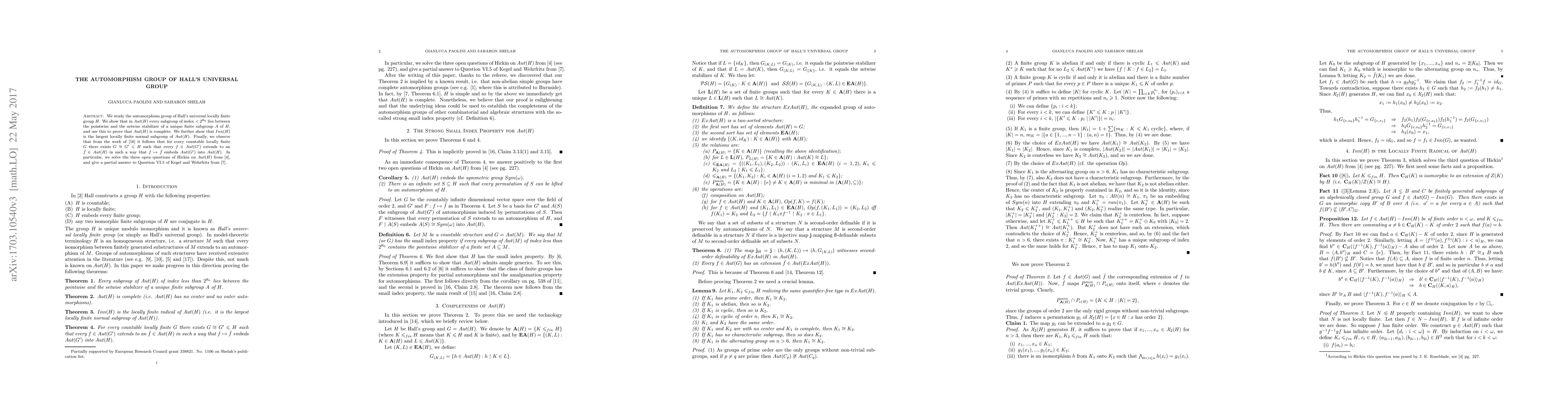 This research paper studies the automorphism group of Hall's universal locally finite group H, proving Aut(H) is complete and solving several open questions about its structure and properties.