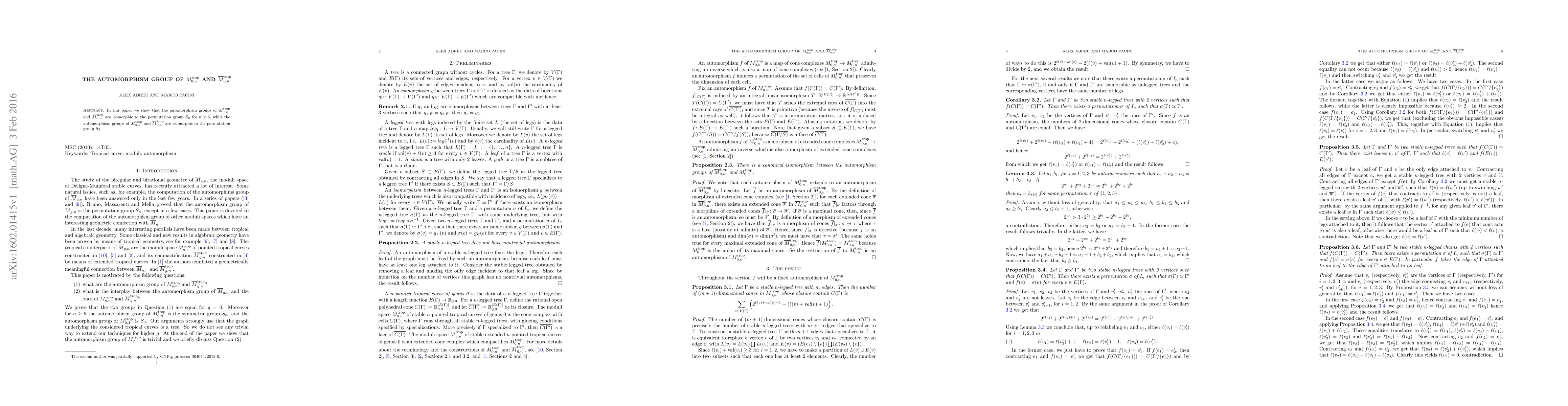 This paper demonstrates that the automorphism groups of $M_{0,n}^{\text{trop}}$ and $\overline{M}_{0,n}^{\text{trop}}$ are isomorphic to $S_n$ for $n \geq 5$, but for $n=4$, they are isomorphic to $S_3$.