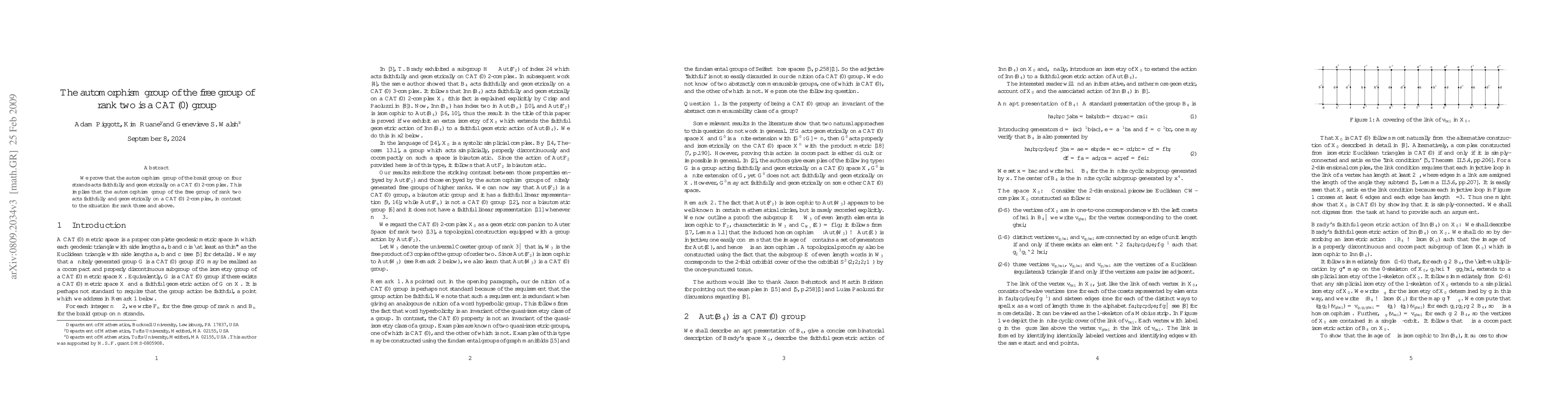 The automorphism group of the free group of rank two acts faithfully and geometrically on a CAT(0) 2-complex, distinguishing it from the behavior in higher ranks. This result demonstrates unique geometric properties of the rank two case.