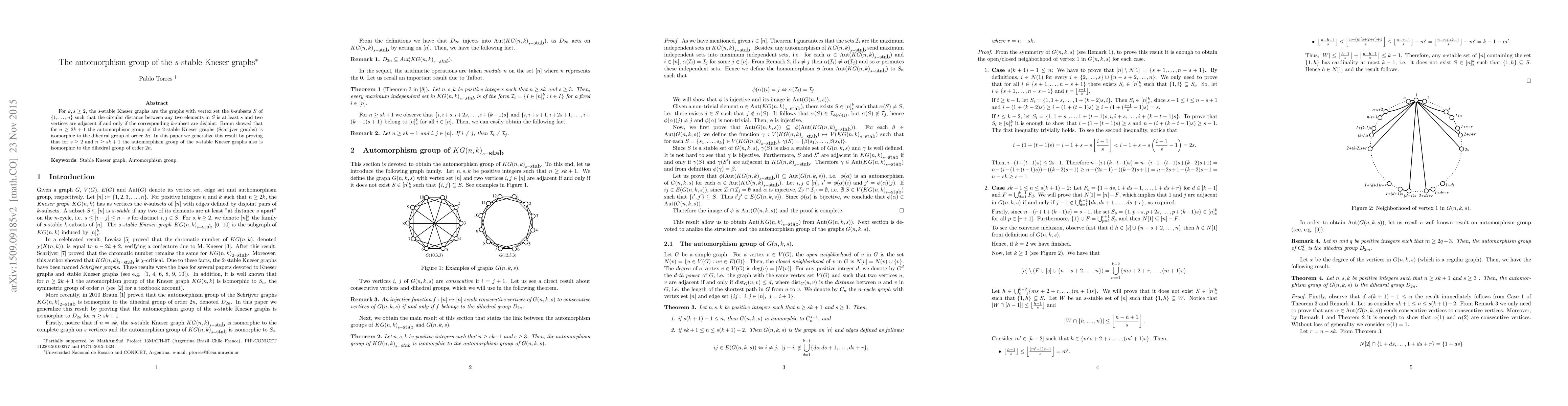 This paper generalizes Braun's result on the automorphism group of $2$-stable Kneser graphs, showing that for $s\geq 2$ and $n\geq sk+1$, the automorphism group of $s$-stable Kneser graphs is isomorphic to the dihedral group of order $2n$.