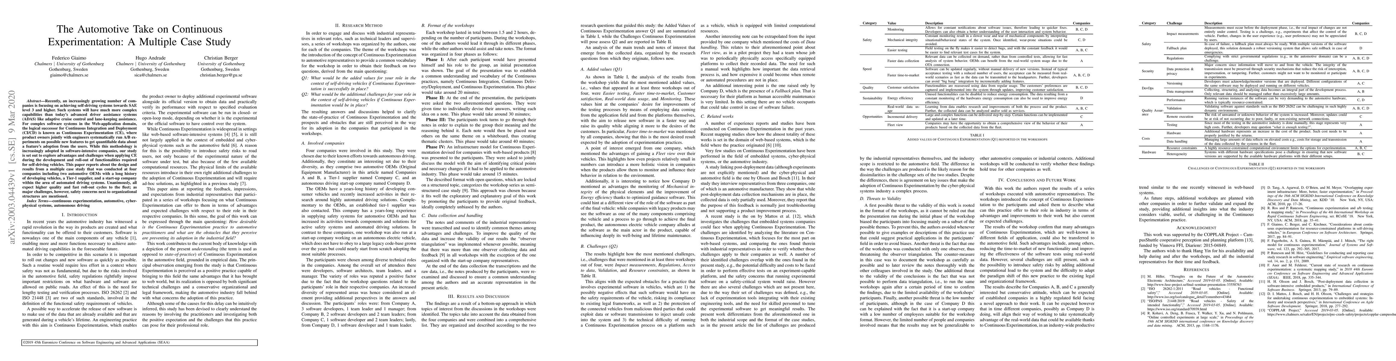 Recently, an increasingly growing number of companies is focusing on achieving self-driving systems towards SAE level 3 and higher. Such systems will have much more complex capabilities than today's advanced driver assistance systems (ADAS) like adaptive cruise control and lane-keeping assistance. For complex software systems in the Web-application domain, the logical successor for Continuous Integration and Deployment (CI/CD) is known as Continuous Experimentation (CE), where product owners jointly with engineers systematically run A/B experiments on possible new features to get quantifiable data about a feature's adoption from the users. While this methodology is increasingly adopted in software-intensive companies, our study is set out to explore advantages and challenges when applying CE during the development and roll-out of functionalities required for self-driving vehicles. This paper reports about the design and results from a multiple case study that was conducted at four companies including two automotive OEMs with a long history of developing vehicles, a Tier-1 supplier, and a start-up company within the area of automated driving systems. Unanimously, all expect higher quality and fast roll-out cycles to the fleet; as major challenges, however, safety concerns next to organizational structures are mentioned.