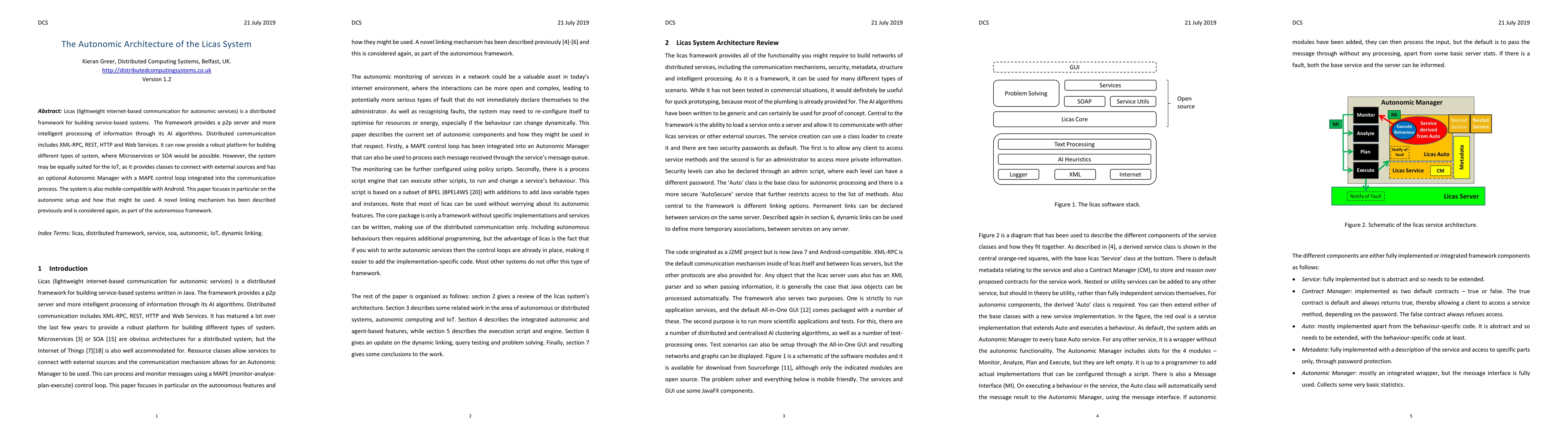 Licas (lightweight internet-based communication for autonomic services) is a distributed framework for building service-based systems. The framework provides a p2p server and more intelligent processing of information through its AI algorithms. Distributed communication includes XML-RPC, REST, HTTP and Web Services. It can now provide a robust platform for building different types of system, where Microservices or SOA would be possible. However, the system may be equally suited for the IoT, as it provides classes to connect with external sources and has an optional Autonomic Manager with a MAPE control loop integrated into the communication process. The system is also mobile-compatible with Android. This paper focuses in particular on the autonomic setup and how that might be used. A novel linking mechanism has been described previously and is considered again, as part of the autonomous framework.