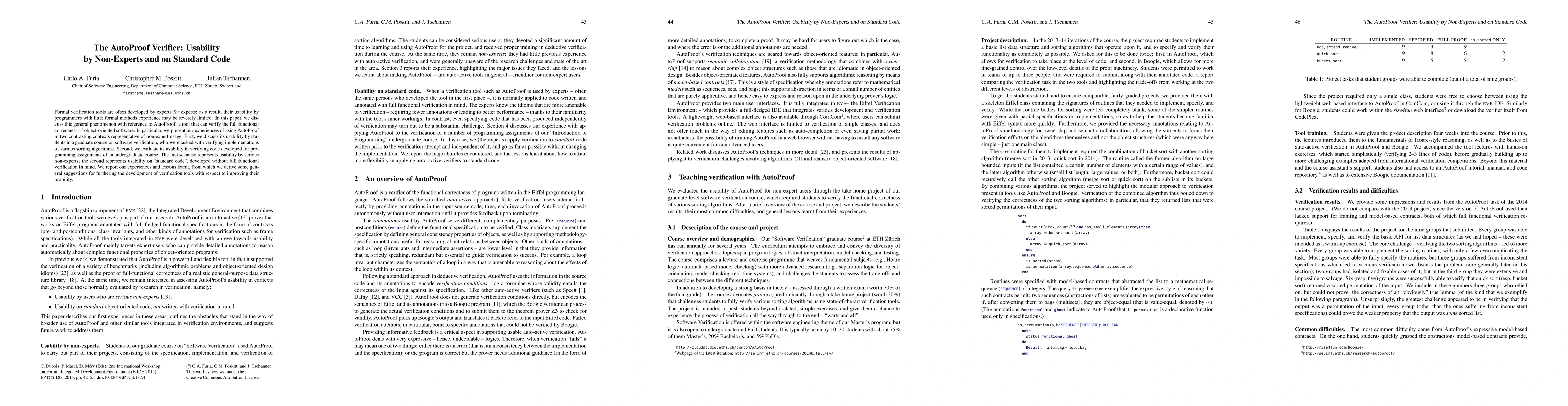 This paper examines the usability of the AutoProof verification tool by non-expert users, including graduate students verifying sorting algorithms and undergraduates verifying standard programming assignments. The study provides insights and recommendations for enhancing the usability of formal verification tools for broader, less experienced audiences.
