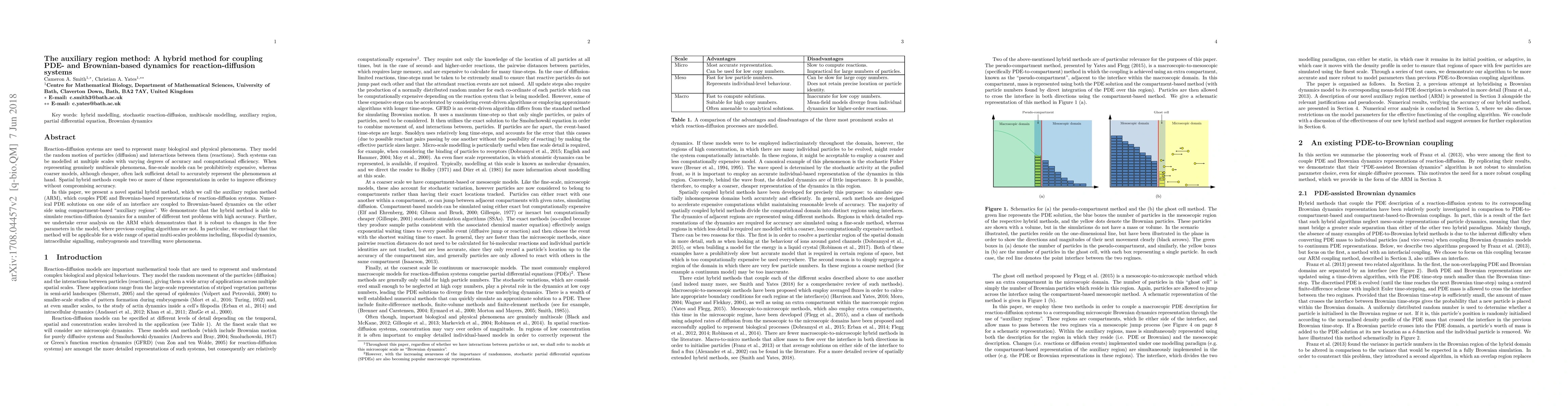 A new hybrid method called the auxiliary region method (ARM) couples PDE and Brownian-based dynamics to simulate reaction-diffusion systems with high accuracy, showing promise for solving complex spatial multi-scale problems in biology and physics.