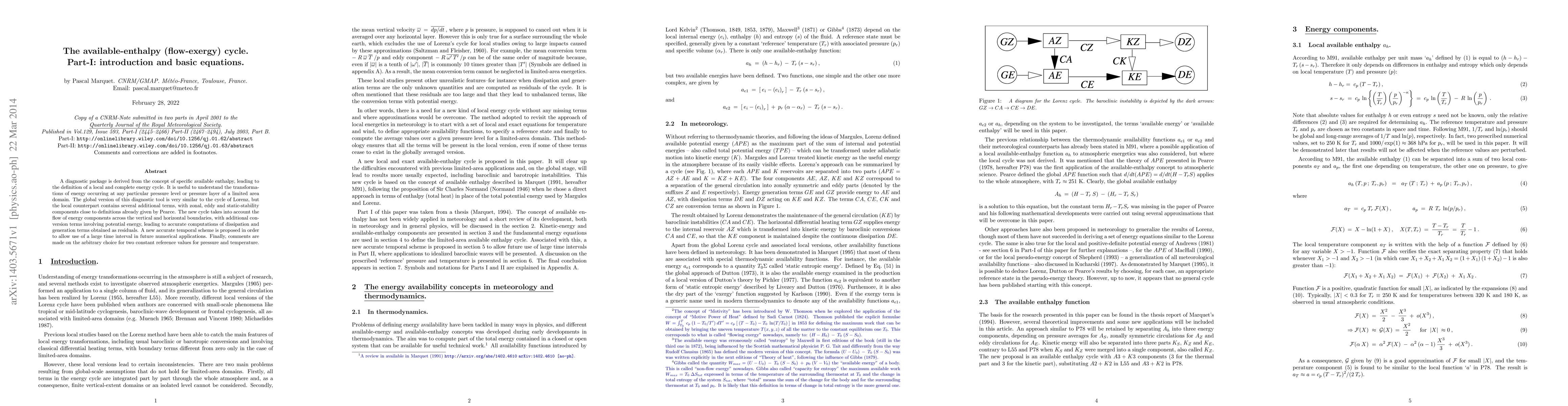 A diagnostic package is derived from the concept of specific available enthalpy, leading to the definition of a local and complete energy cycle. It is useful to understand the transformations of energy occurring at any particular pressure level or pressure layer of a limited area domain. The global version of this diagnostic tool is very similar to the cycle of Lorenz, but the local counterpart contains several additional terms, with zonal, eddy and static-stability components close to definitions already given by Pearce. The new cycle takes into account the flow of energy components across the vertical and horizontal boundaries, with additional conversion terms involving potential energy, leading to accurate computations of dissipation and generation terms obtained as residuals. A new accurate temporal scheme is proposed in order to allow use of a large time interval in future numerical applications. Finally, comments are made on the arbitrary choice for two constant reference values for pressure and temperature.