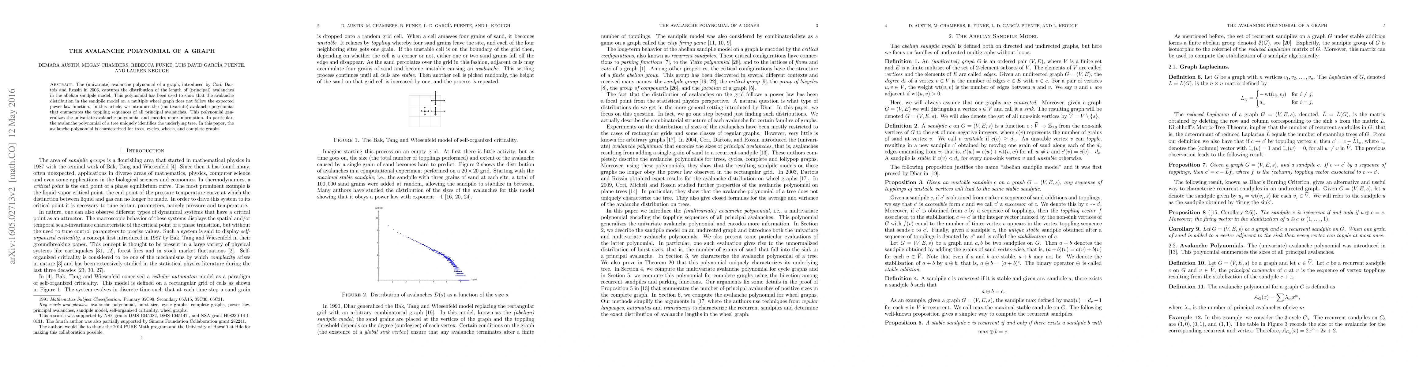 Researchers introduce a multivariate avalanche polynomial that encodes information about principal avalanches in graphs, providing new insights into the underlying structures of trees, cycles, wheels, and complete graphs.