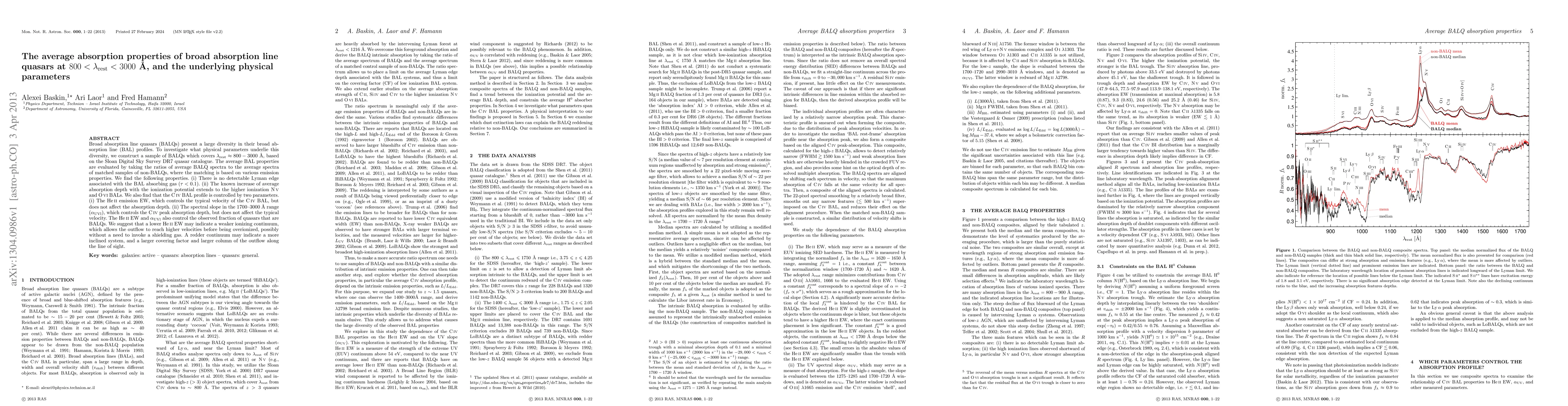 This study investigates the average absorption properties of broad absorption line quasars (BALQs) in the 800-3000 Å range, finding no detectable Lyman edge and an increase in absorption depth with ionization potential. The C IV BAL profile is influenced by He II emission EW and the UV spectral slope, affecting velocity and absorption depth respectively.