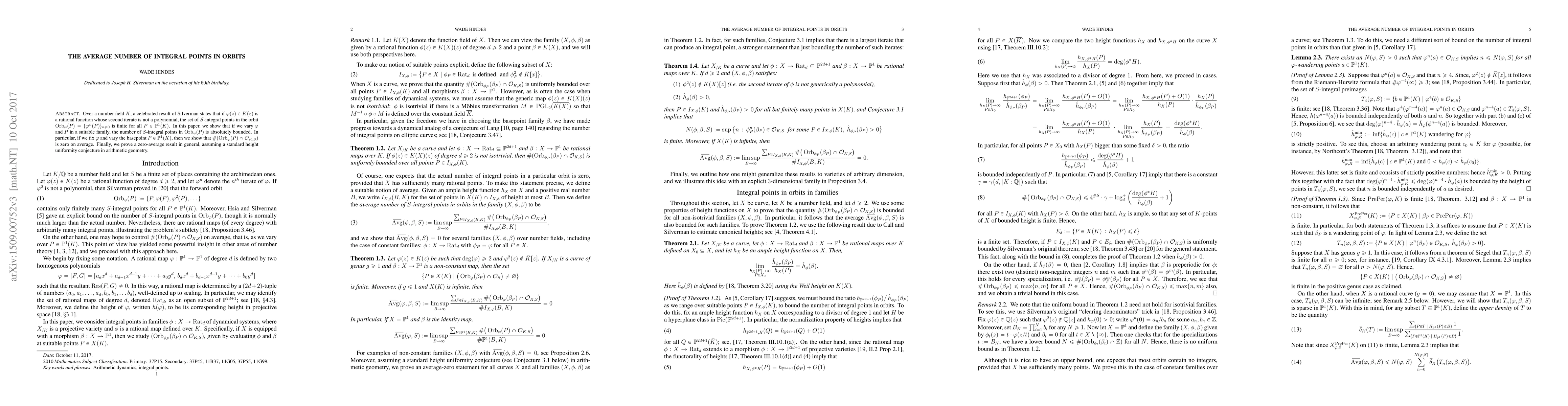 The paper shows that for a fixed rational function β(z) over a number field K, the average number of S-integral points in its orbit around any point P in projective space is finite. This improves upon Silverman's result by varying both the function and the basepoint.